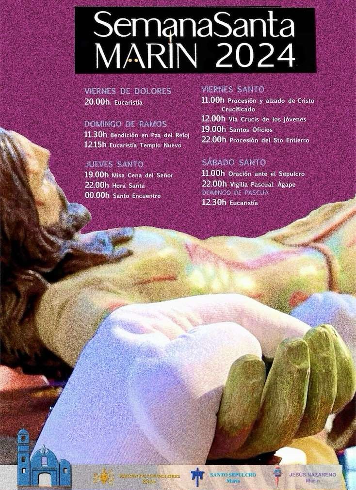Y terminados estos preparativos Marín encara ya ya celebración de la Semana Santa que tendrá en el Domingo de Ramos la celebración tradicional de la Bendición de Palmas y Ramos en la Plaza del Reloj con la diferencia con respecto a los años anteriores, de que este acto se adelante media hora, es decir, se realizará la bendición como siempre, pero a las ONCE Y MEDIA para, a continuación, marchar en procesión hacia el Nuevo Templo donde se celebrarÁ la Eucaristía a las doce y cuarto.