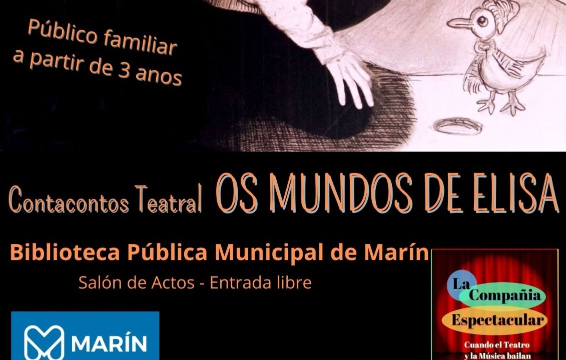 “Os Mundos de Elisa” es el título de una sesión de contacontos que esta tarde, a partir de las cinco en la Biblioteca pública Municipal se ofrece a todos los niños, niñas y familias que quieran asistir ya que la entrada es libre y gratuita. La obra representada correrá a cargo de “La Compañia Espectacular” , garantía de un espectàculo que serà del gusto de los asistentes en esa jornada vacacional de MIércoles Santo