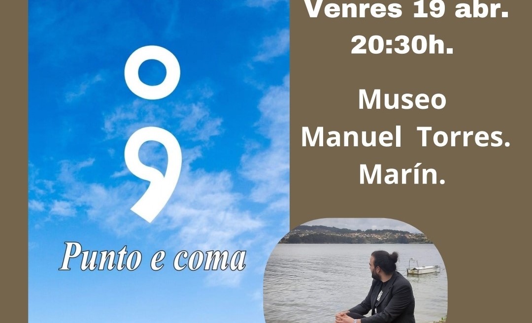 Hoxe venres, ás 20:30 horas no Museo Manuel Torres, terá lugar a presentación do libro Punto e coma, do poeta marinense Aarón Franco que estará acompañado polo editor Marcelo Saffores, director da editorial TarQus, Charo Valcárcel, mestra xubilada do IES Valle - Inclán, poetisa e autora do limiar.