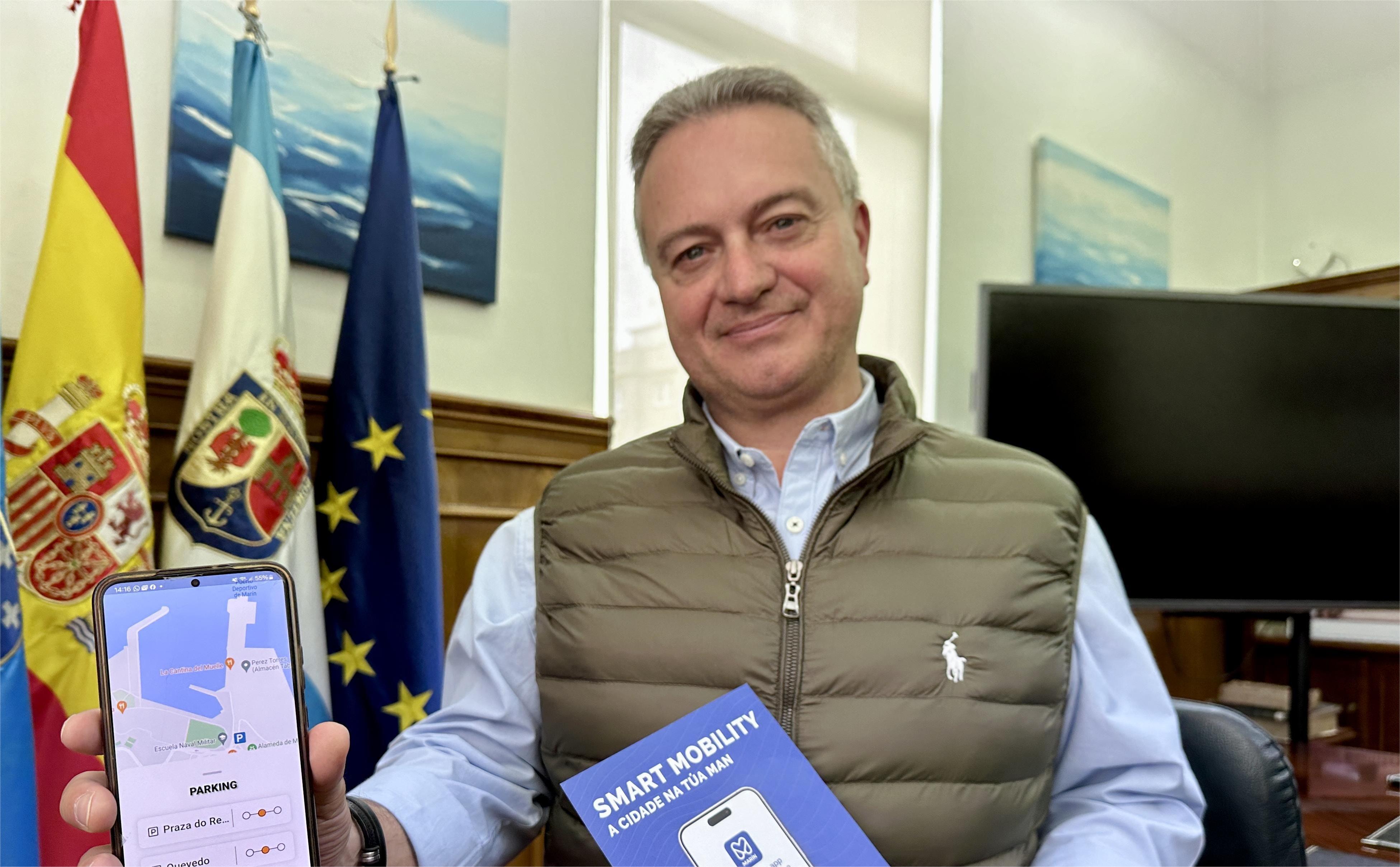 Santos explica que “no casco urbano, temos que intentar mellorar a nosa forma de desprazarnos porque non pode ser que para traxectos de 5 minutos collamos o coche, puidendo apostar por ir camiñando como nos mostrou o PMUS, o Plan de Mobilidade Sostible, que ten que axudarnos a tomar decisións coherentes para mellorar neste sentido”.Reconoce Santos que, además del tráfico propio que generan los vecinos del centro, hay que añadir el de quienes llegan de los alrededores o de quien viene a trabajar aquí que utiliza vehículos privados y se refiere a las determinaciones que sobre la mesa puso PMUS “unha cifra real e obxectiva do número de aparcamentos que temos no centro urbano, gratis e públicos” e como están repartidos, porque non podemos propoñer facer aparcamentos por facer en lugares onde hai suficientes prazas e pretender que con iso arranxemos as zonas tensionadas sendo que, nas principais zonas do centro hai rexistradas 2.415 prazas de aparcamento, das cales 1.548 son libres, 25 de mobilidade reducida e 62 de carga e descarga, repartidas entre as zonas/rúas:
