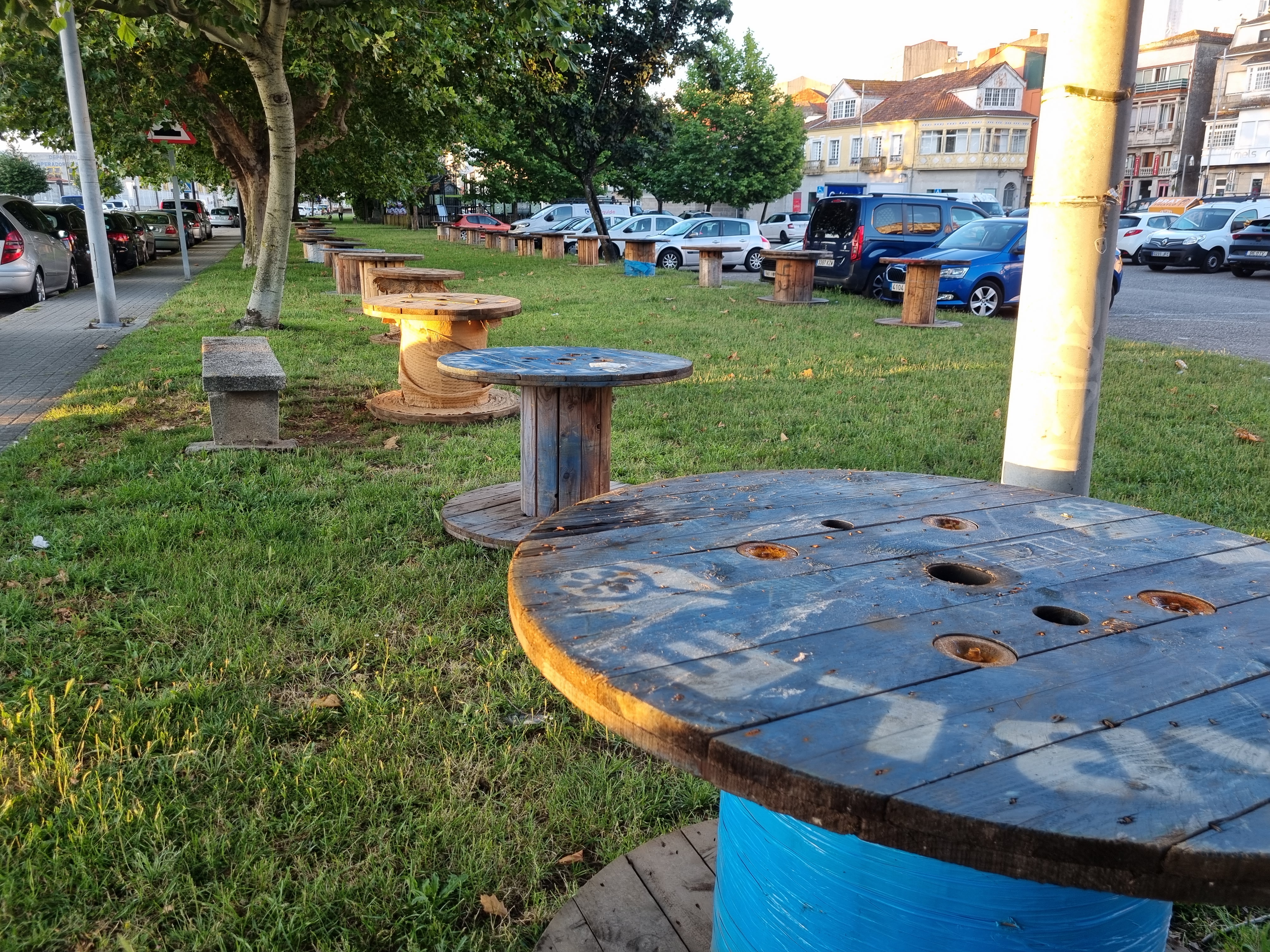 Más de cincuenta soportes que formarán una larguísima mesa para degustar churrasco y sardinas cómodamente