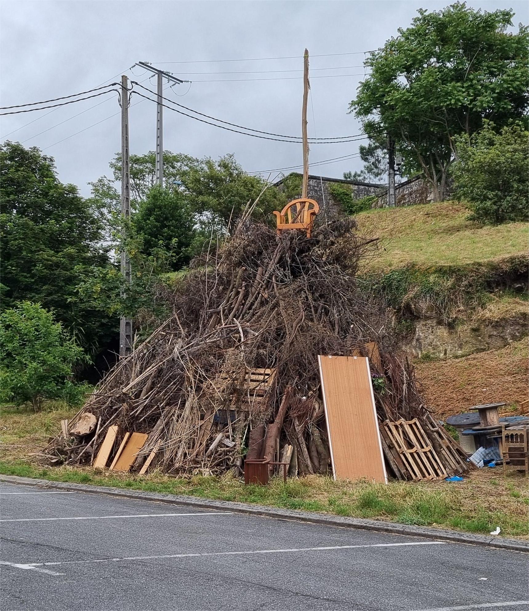 La Barriada de Pérez crespo, en Mogor, culminrá también la noche de San Juan con una gran hoguera que ya tiene acumulada gran cantidad de matetial que arderá con la algarabía de todos los años, al igualque en otros puntos del rural como San Xulián o Ardán donde tembièn vienen presparando importantes foleones.