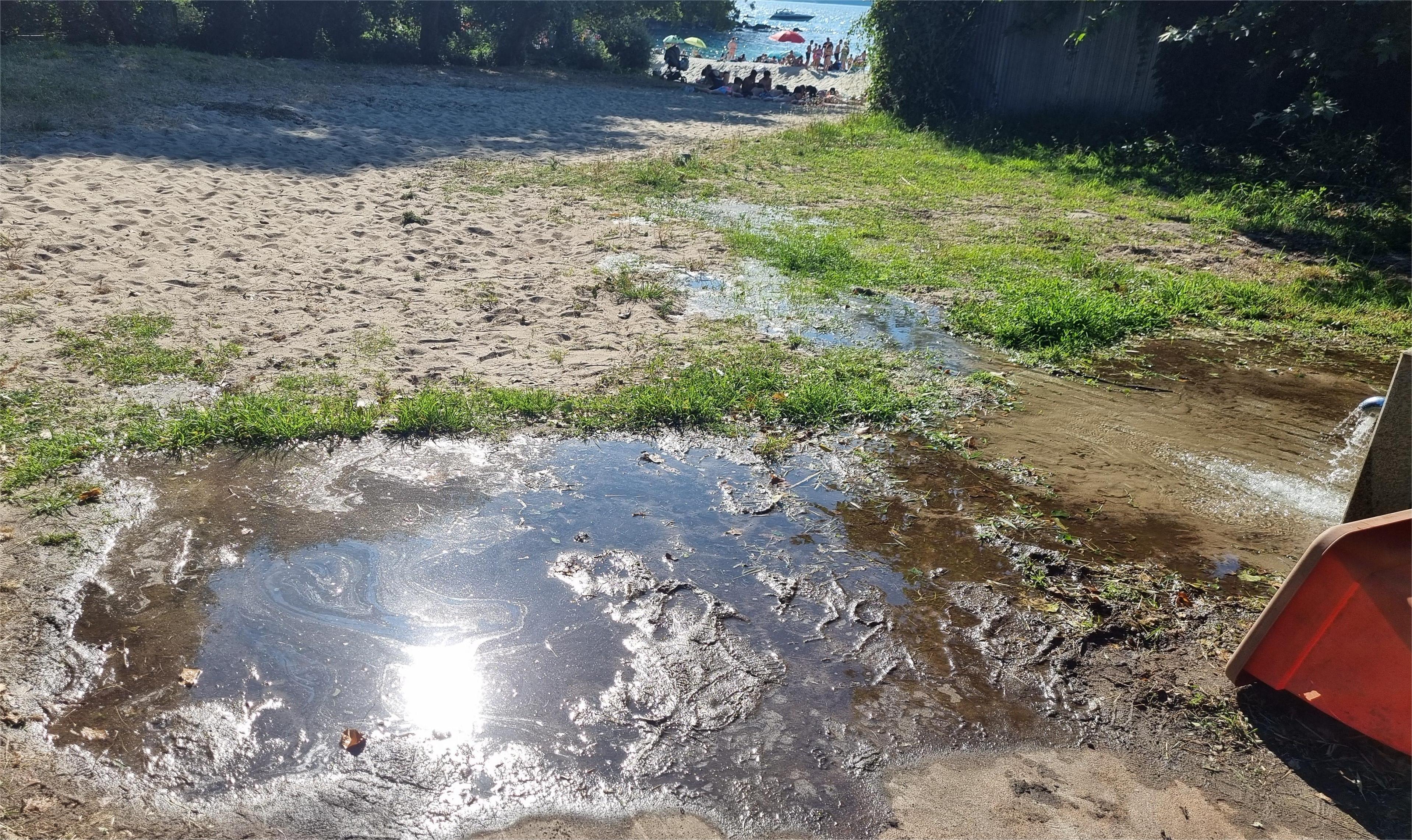 El incombustible charco impide la entrada normal a la playa
