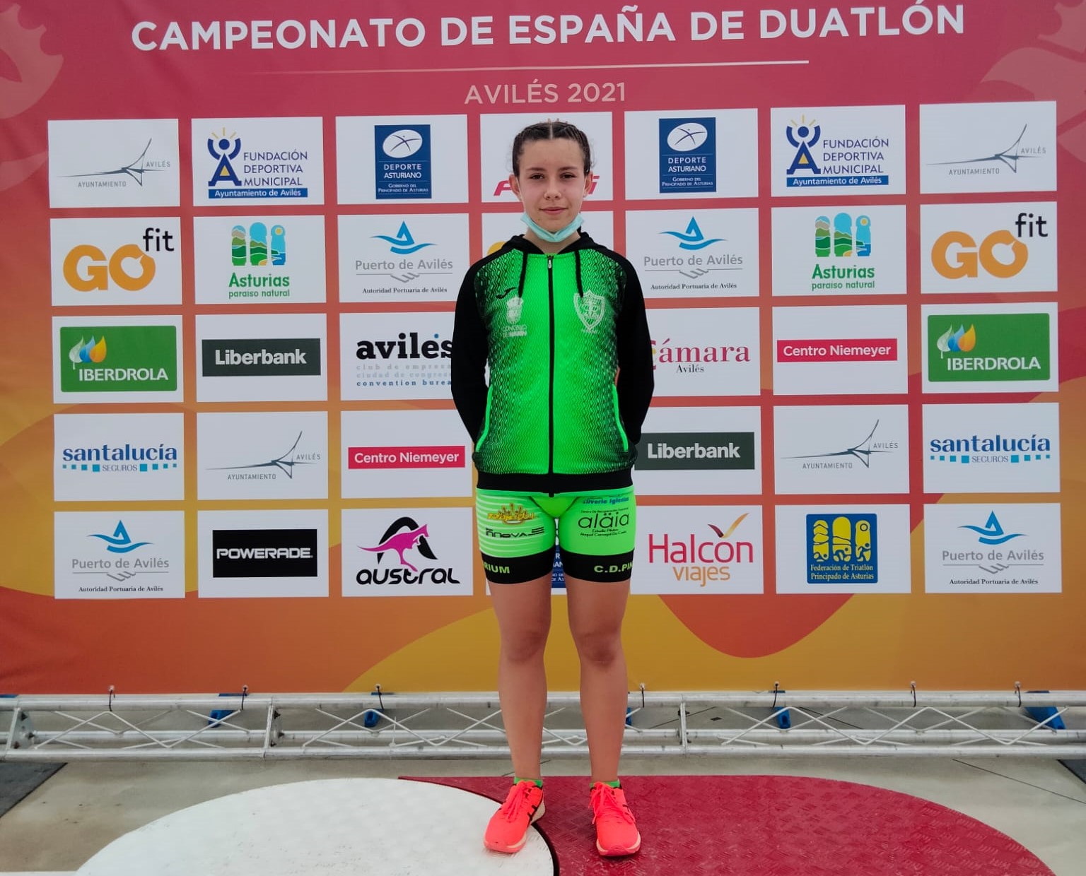 Lorena Patiño es una joven marinense campeona gallega de Duatlón que, este fin de semana, viajó a Asturias para participar en Avilén en el campeonato de España de la especialidad. Debido a las restricciones impuestas por el Covid-19, que obligó a salidas espaciadas de las corredoras, la carrera se desarrolló en un formato no habitual para la deportista del Pinarium pero, aún así, logró el quinto puesto en la meta y destacó sobre todo en la carrera a pie donde marcó el mejor tiempo de las 120 participantes y consiguiendo el quinto mejor tiempo en el global de los tres sectores que se componen de 2 kilómetros de carrera a pie, 6,6 en bicicleta y 1km de carrera a pie nuevamente. La clasificación estuvo muy apretada, no en vano entraron en el mismo minuto las tres primeras clasificadas, y nuestra Lorena lo hizo a escasos segundos quedando fuera del podium por muy poca diferencia.