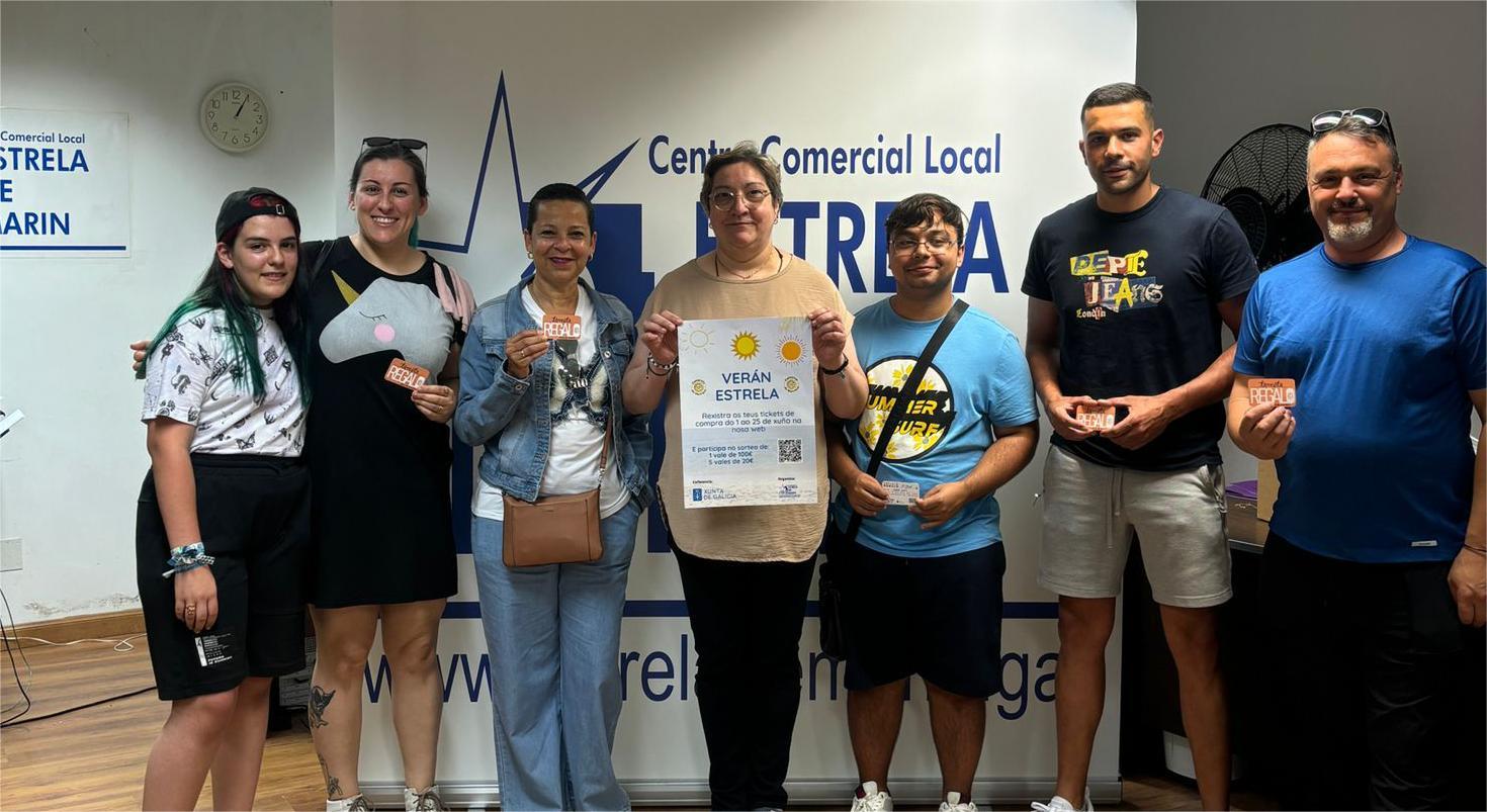 La presidenta de la asociación comercial “Estrela de Marín” procedió ayer a hacer entrega de las tarjetas premio a las personas agraciadas en el sorteo celebrado correspondiente a la campaña promocional de este verano, vales de 100 y 20 euros que recibieron Ana Belén Cortegoso Muíños, Ana Elvira Carro Sobral, Marta Piñeiro Otero, Beatriz Mesias Varela,Rodrigo Castro Collazo, Ana Mónica da Silva Oliveira