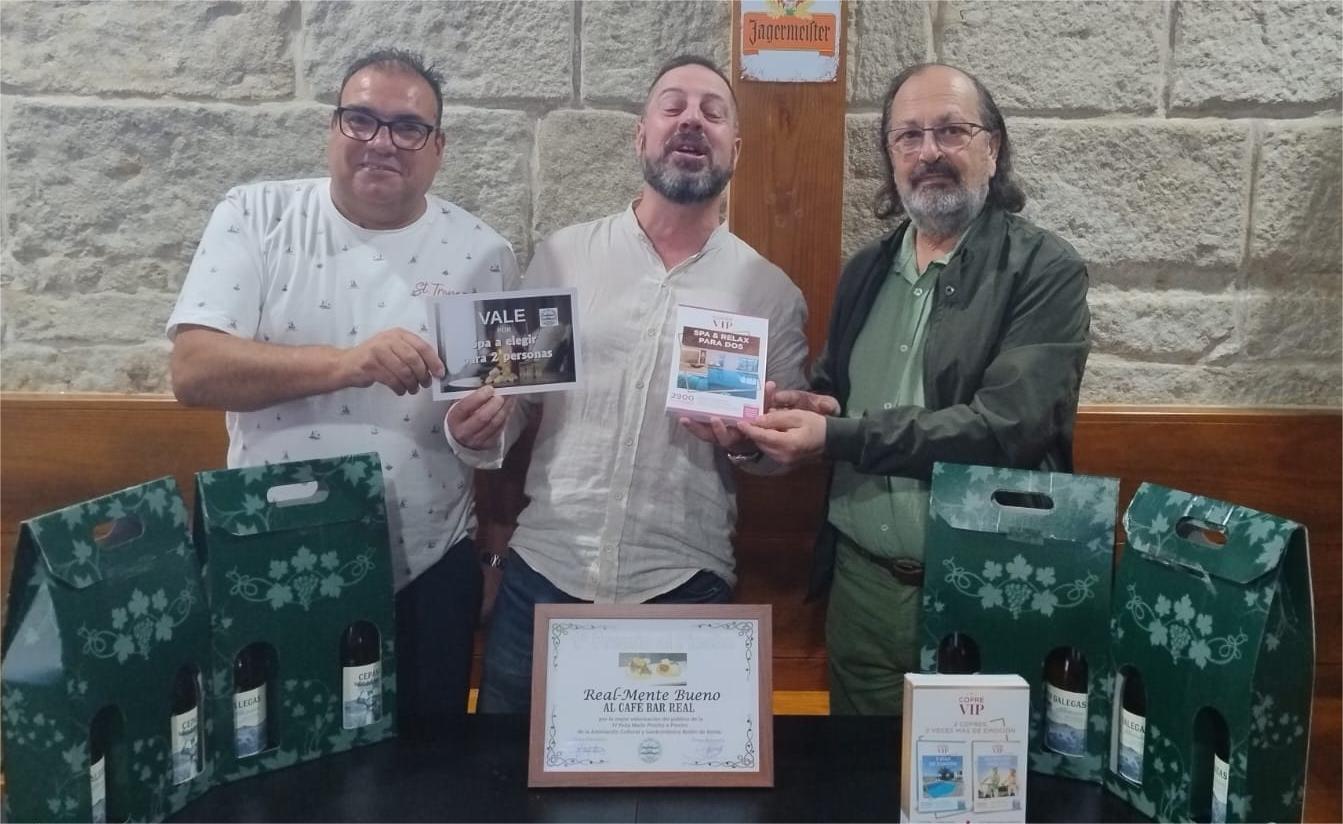 El pincho ganador de dicha votación fue el denominado 'Real-Mente Bueno' que sirvió durante los cinco días que duró la ruta el Café-Bar Real y fueron los propietarios de dicho establecimientos los que recibieron de manos del presidente Manuel Area y el secretario Fernando Martínez el diploma que los acredita como ganadores del concurso y el premio consistente en un viaje-vacaciones a elegir entre varias opciones ofrecidas por una acreditada agencia del sector.