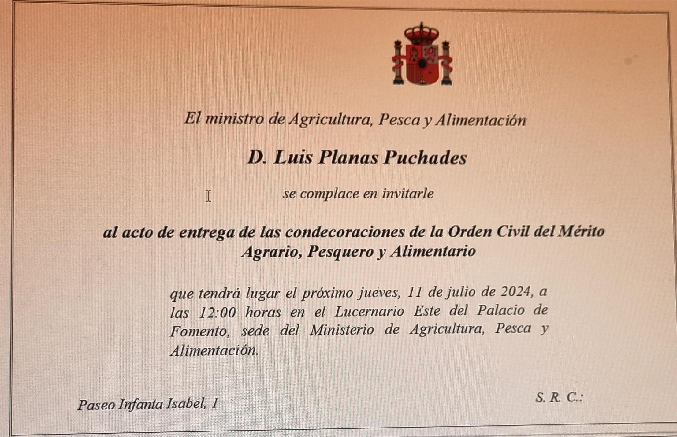 El Ministro de Agricultura Pesca y Alimentación, Luis Planas Puchades entregará este mediodía a Eladio Rosales Santiago, armador del puerto marinense, la “Encomienda de Número al Mérito Pesquero” en un acto que tendrá lugar en la sede del Ministerio de Agricultura y Pesca