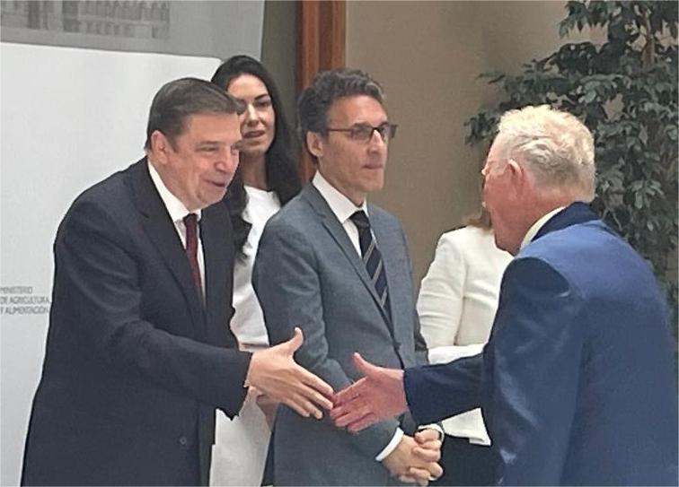 Eladio Rosales Santiago recogió este mediodía de manos del propio Ministro de Pesca Luis Planas la Medalla de la Orden del Mérito Pesquero junto con otras personas galardonadas por sus trayectorias en el ámbito de la agricultura y la alimentación.