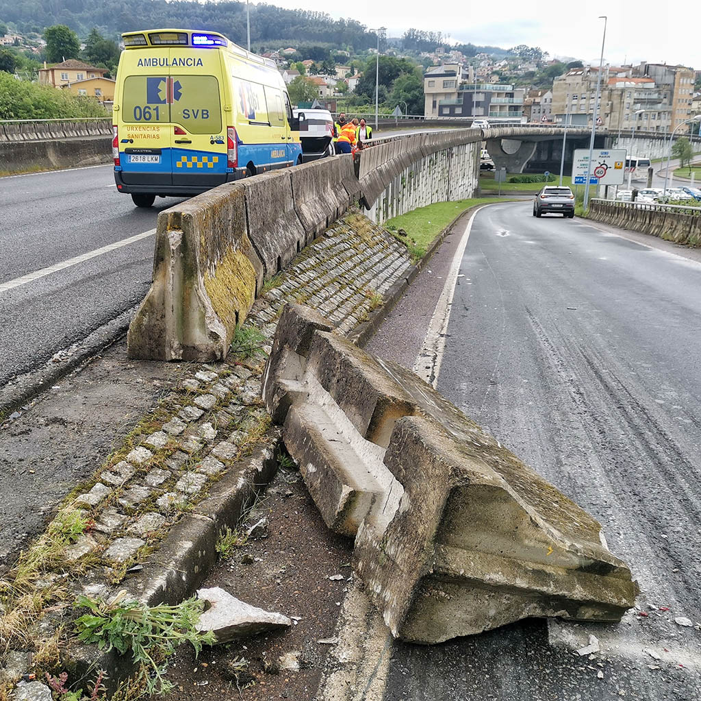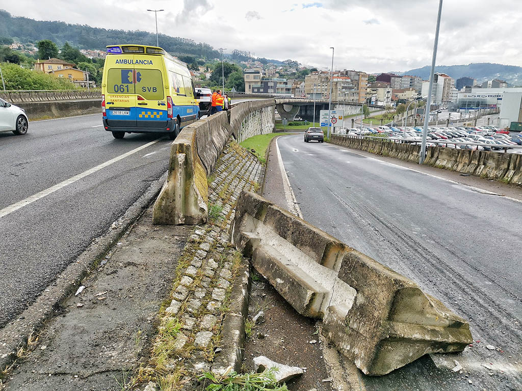 La mujer fue atendida en el lugar del siniestro y fue trasladada por una ambulancia del 061 que se trasladó al punto del accidente. Acudieron también agentes de la Guardia Civil de Tráfico de Pontevedra, y un equipo de conservación de Carreteras para efectuar la limpieza de la calzada y reponer las medianeras en su lugar, ya que una de ellas estaba desplazada hacia al carril exterior de la vía.