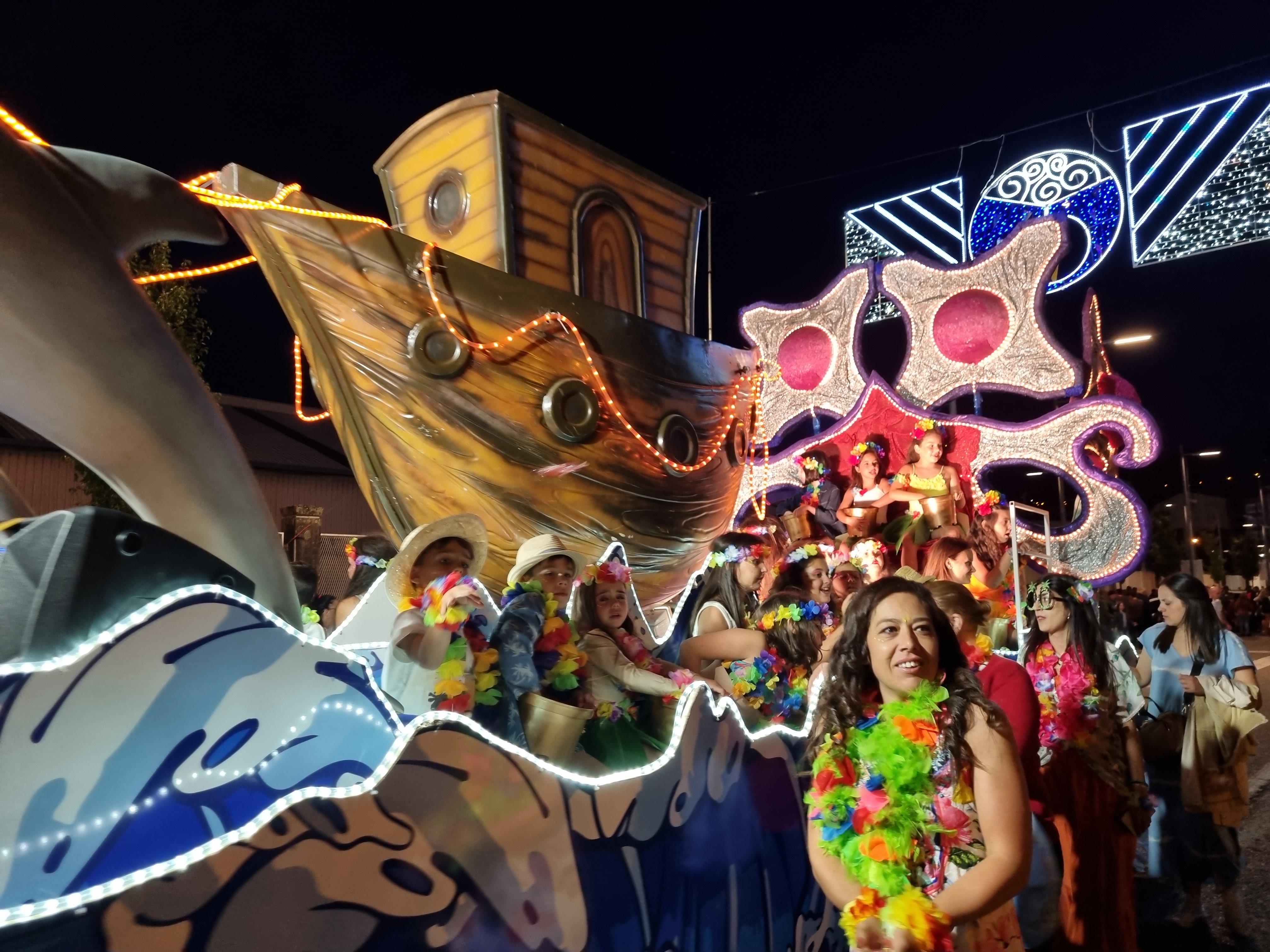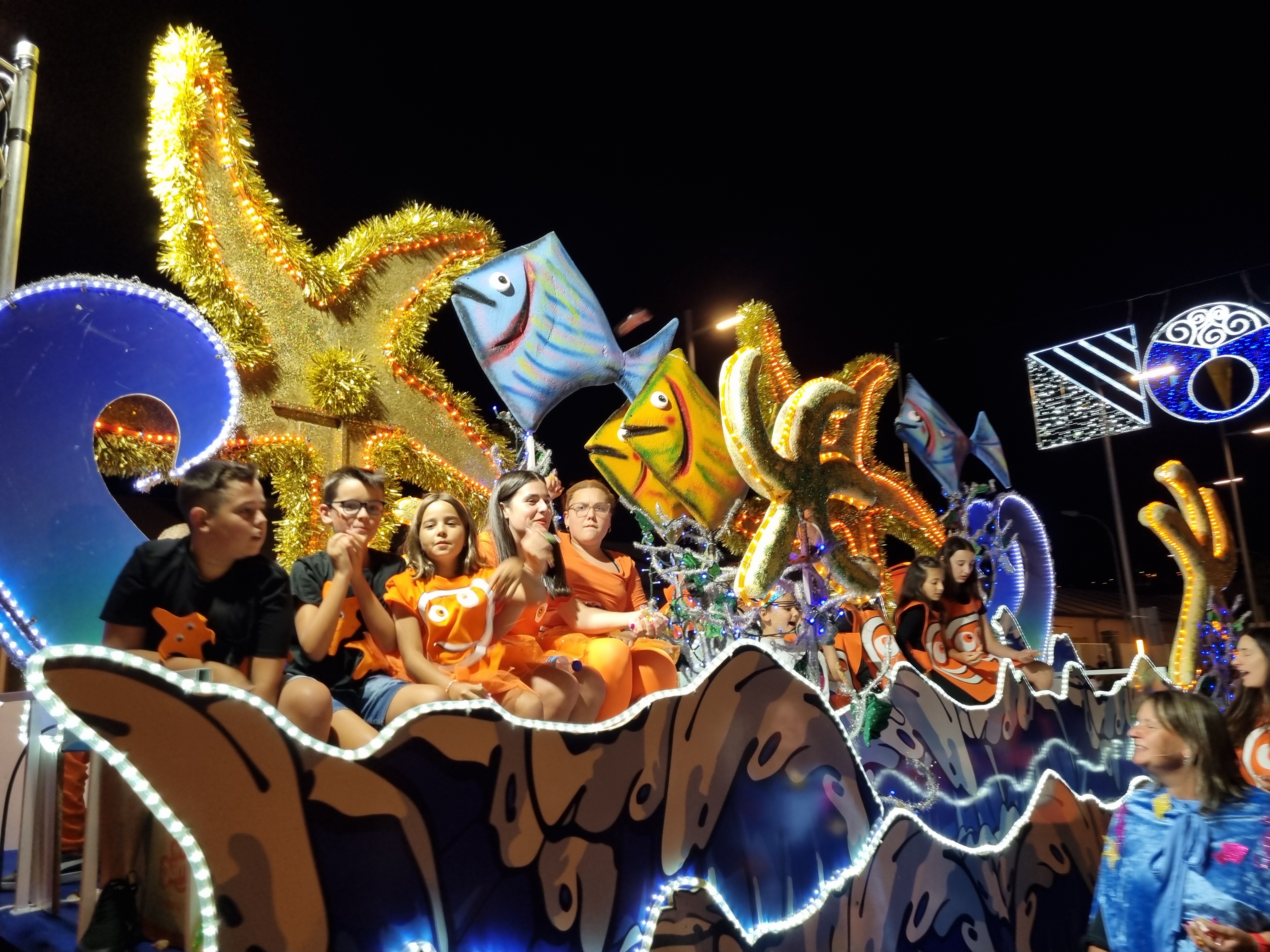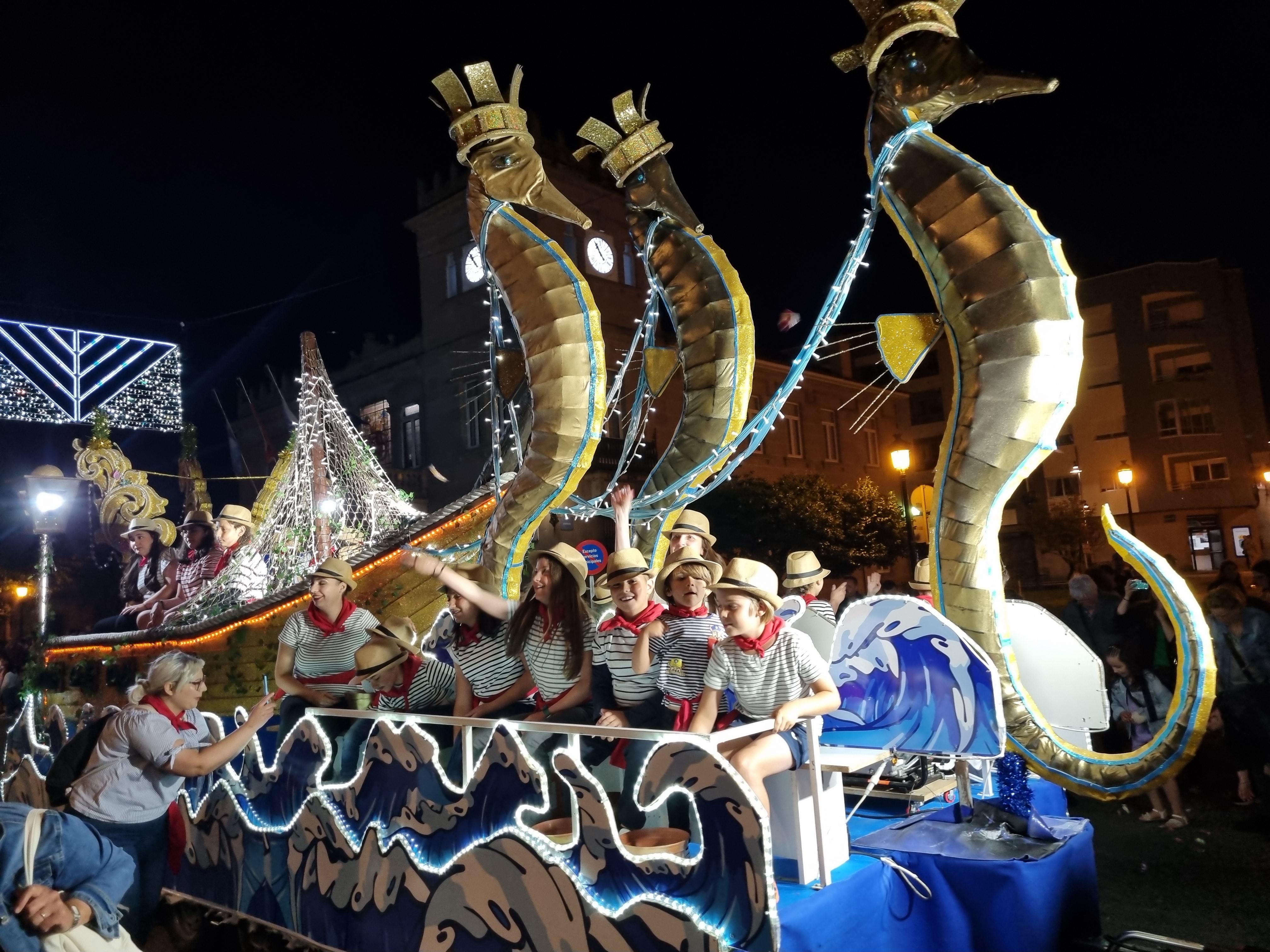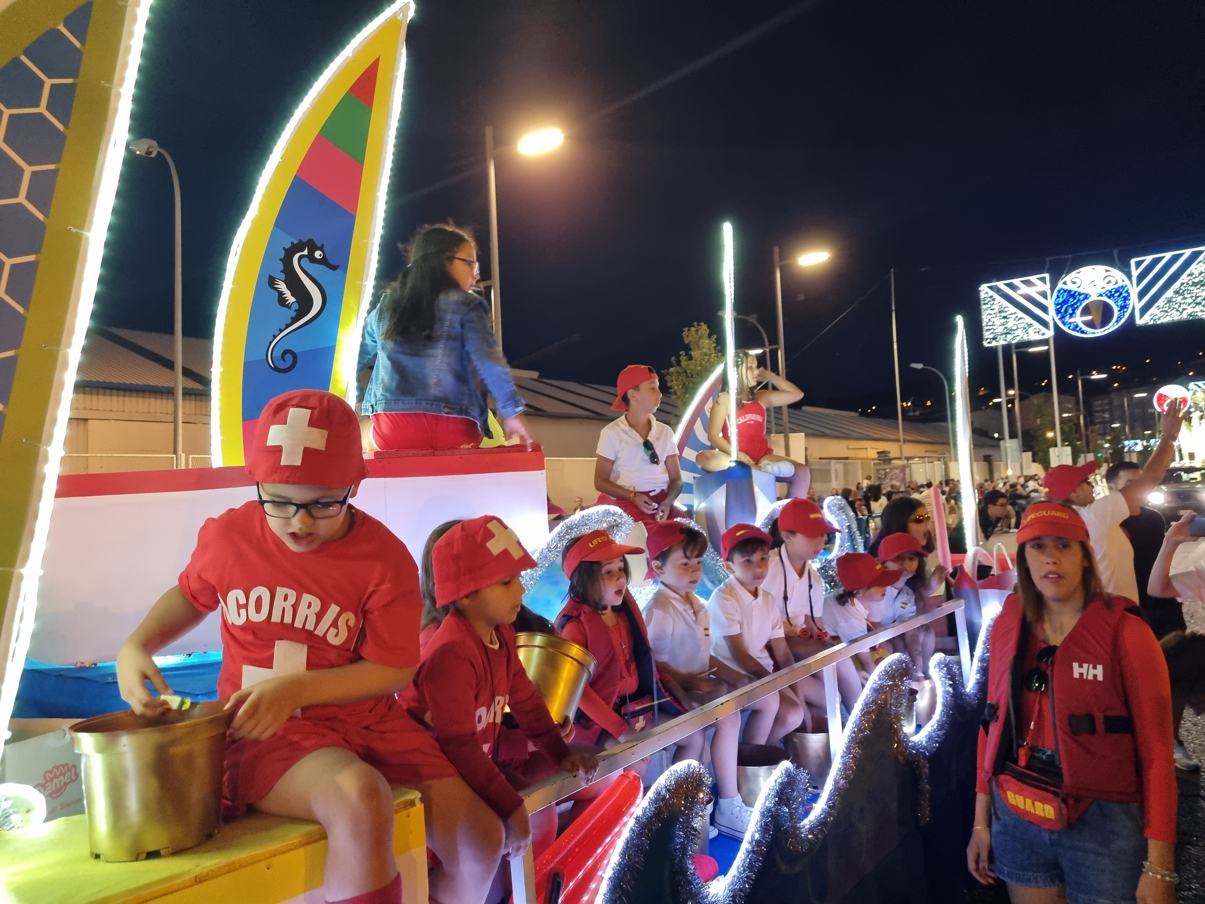 Se había trasladado del jueves al viernes por el mal tiempo, la celebración más colorista del programa de fiestas y acabó siendo un acierto por la cantidad de público que abarrotó Marín para presenciar el desfile de carrozas cuyos motivos eran ese año la playa y el verano, acaso como una metáfora de lo que deberíamos esar viviendo y, a mediados de julio, seguimos en tiempo propio de los principios de primavera.
