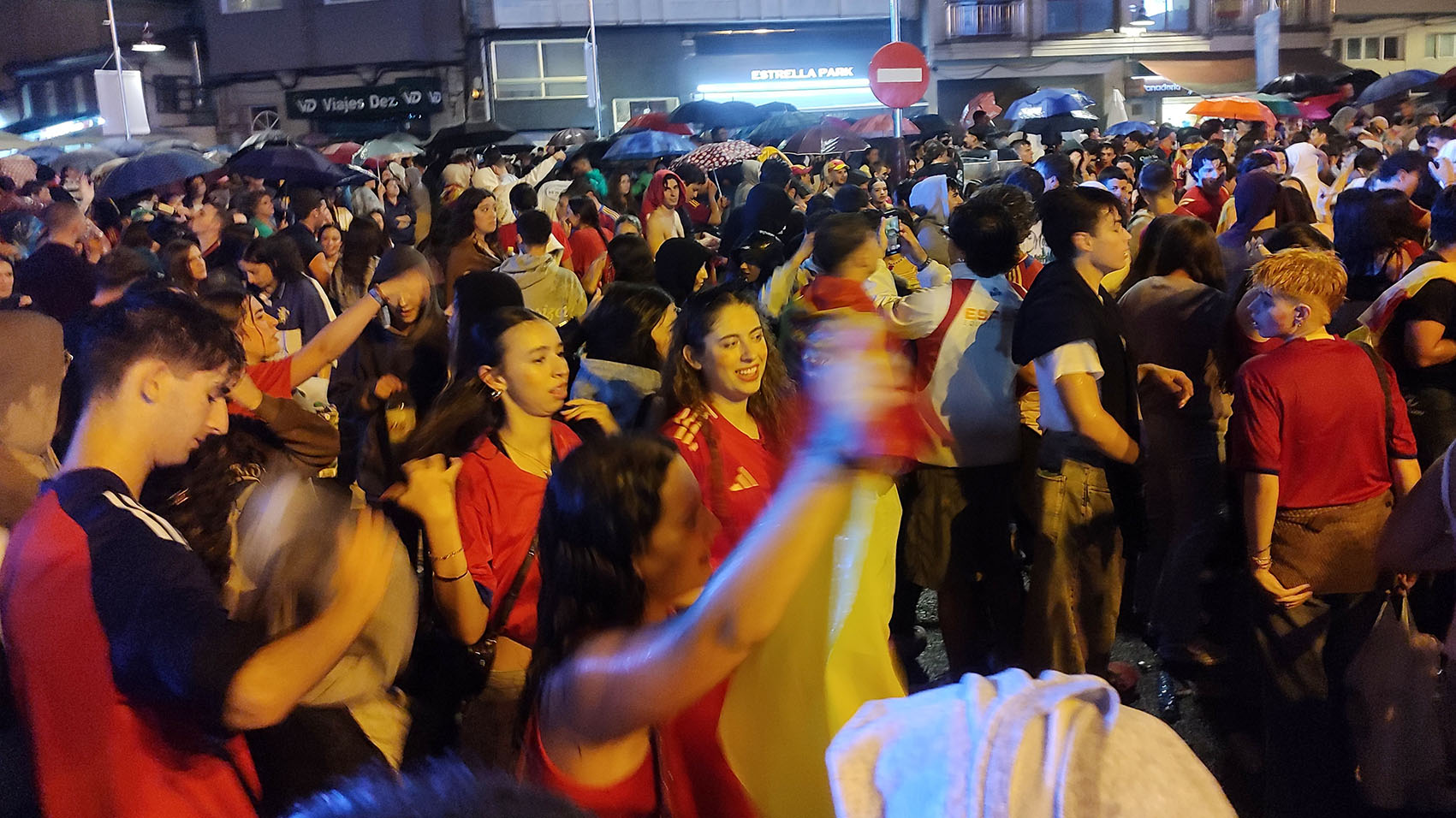 Ni la lluvia, al principio intermitente y muy persistente y copiosa durante la segunda parte del partido entre Estaña e Inglaterra, pudo parar la euforia máxima que se vivió sobre todo cuando a cuatro minutos del final Mikel Oyarzábal marcó el gol de la victoria final.