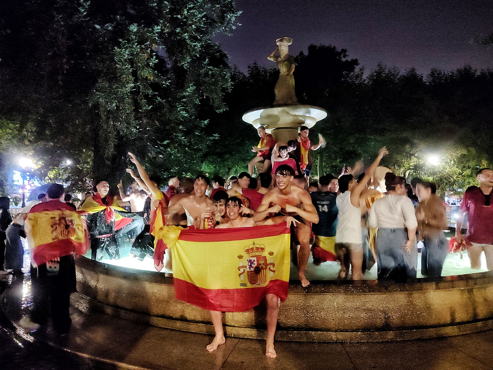 La celebración se desató al término del encuentro en los dos puntos en los que había pantalla, y también en los establecimientos hosteleros que habían instalado televisores en sus terrazas. Un grupo nutrido de jóvenes terminaron bañándose "en paños menores" en la fuente de la Alameda Rosalía de Castro, para celebrar la consecución del cuarto campeonato de Europa en manos de España, algo que ninguna otra selección nacional tiene en su poder.