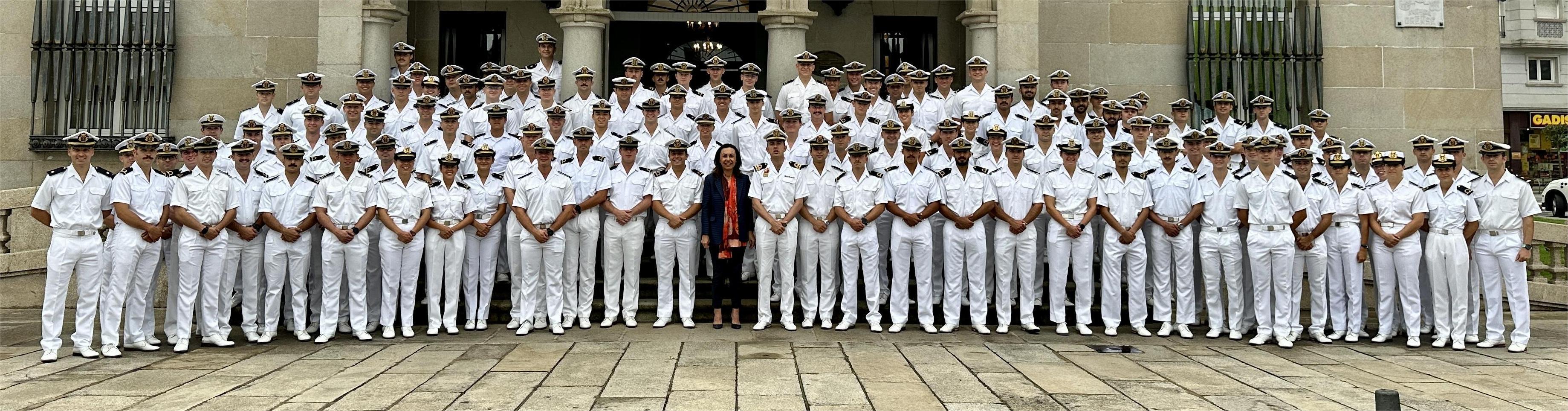 Fernández, el Jefe del Estado Mayor de la Defensa Almirante General D.Teodoro Esteban López Calderón, el Almirante General Jefe de Estado Mayor de la Armada D. Antonio Piñeiro Sánchez, el Presidente de la Xunta de Galicia D. Alfonso Rueda Valenzuela, la Alcaldesa de Marín D.ª María Pilar Ramallo Vázquez y el Rector de la Universidad de Vigo D. Manuel Joaquín Reigosa Roger entre otros y además, cientros de personas entre las que se encontrarán las familias de cada aspirante o nuevo oficial de la Marina.