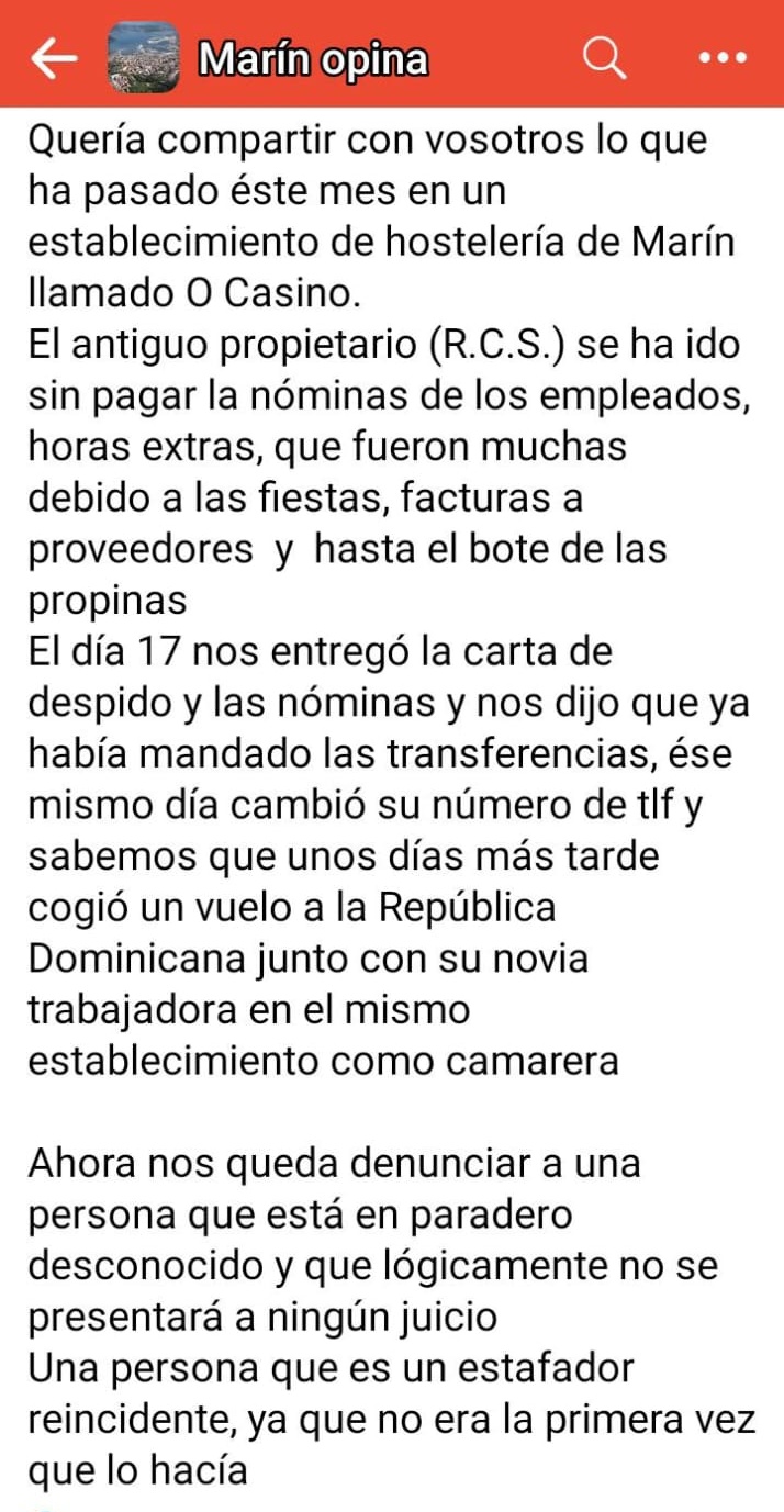 No se habla de otra cosa en los ámbitos hosteleros de Marín desde hace unos días, y de hecho existe un grupo de whatsshap que 'está que arde' con el sórdido tema que hoy traemos para todos nuestros lectores.