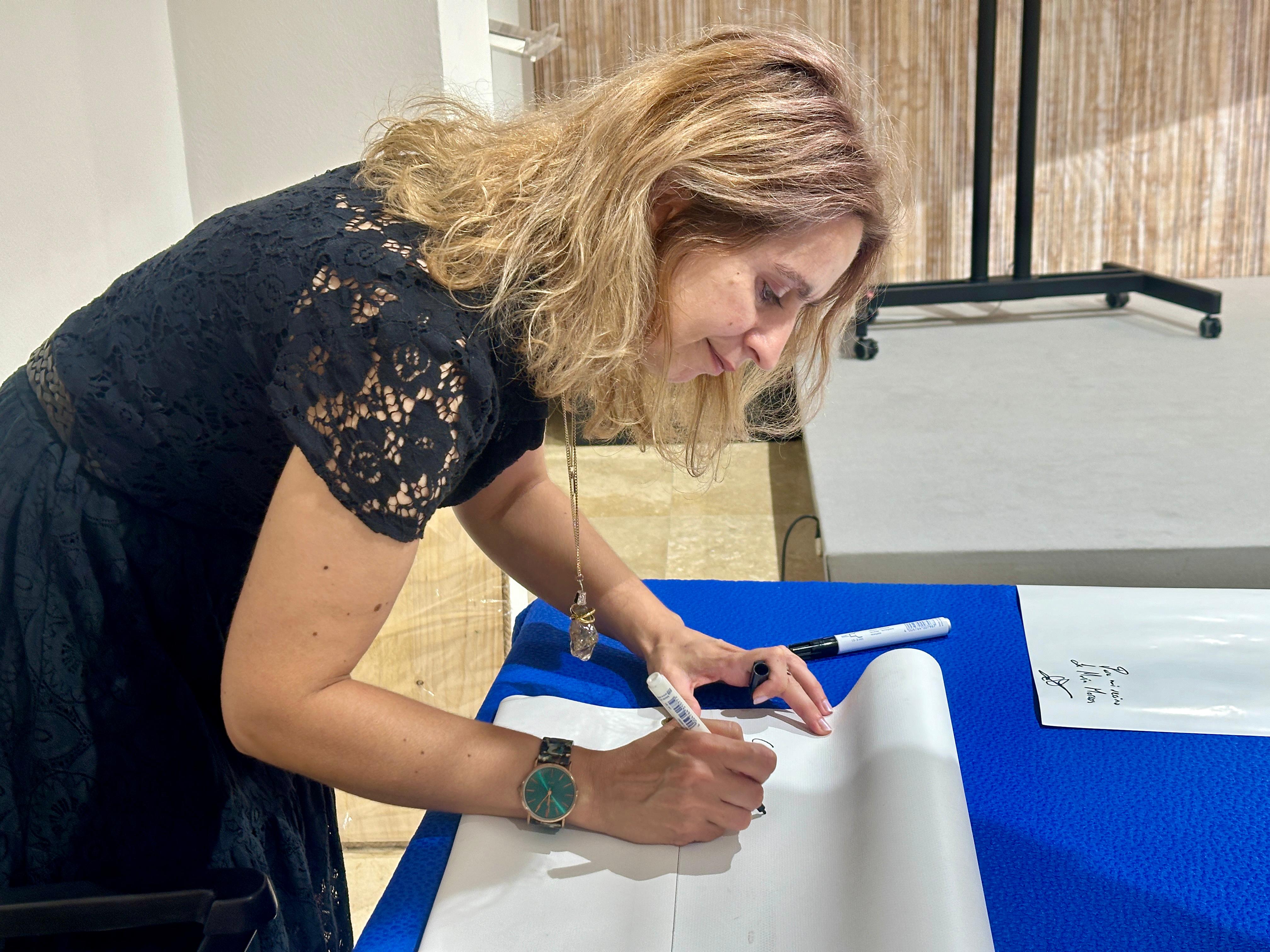 Patricia firmó ayer numerosas copias de su cartel de las fiestas del Carmen
