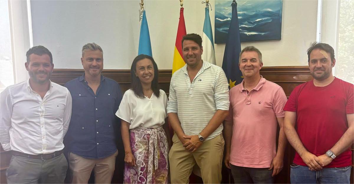 María Ramallo, alcaldesa de Marín junto con el concejal de deportes Antonio Traba, recibió ayer en su despacho a la nueva junta directiva del Marín C.F. encabezada por su presidente Miguel Pazos Beis y otros miembros de la misma
