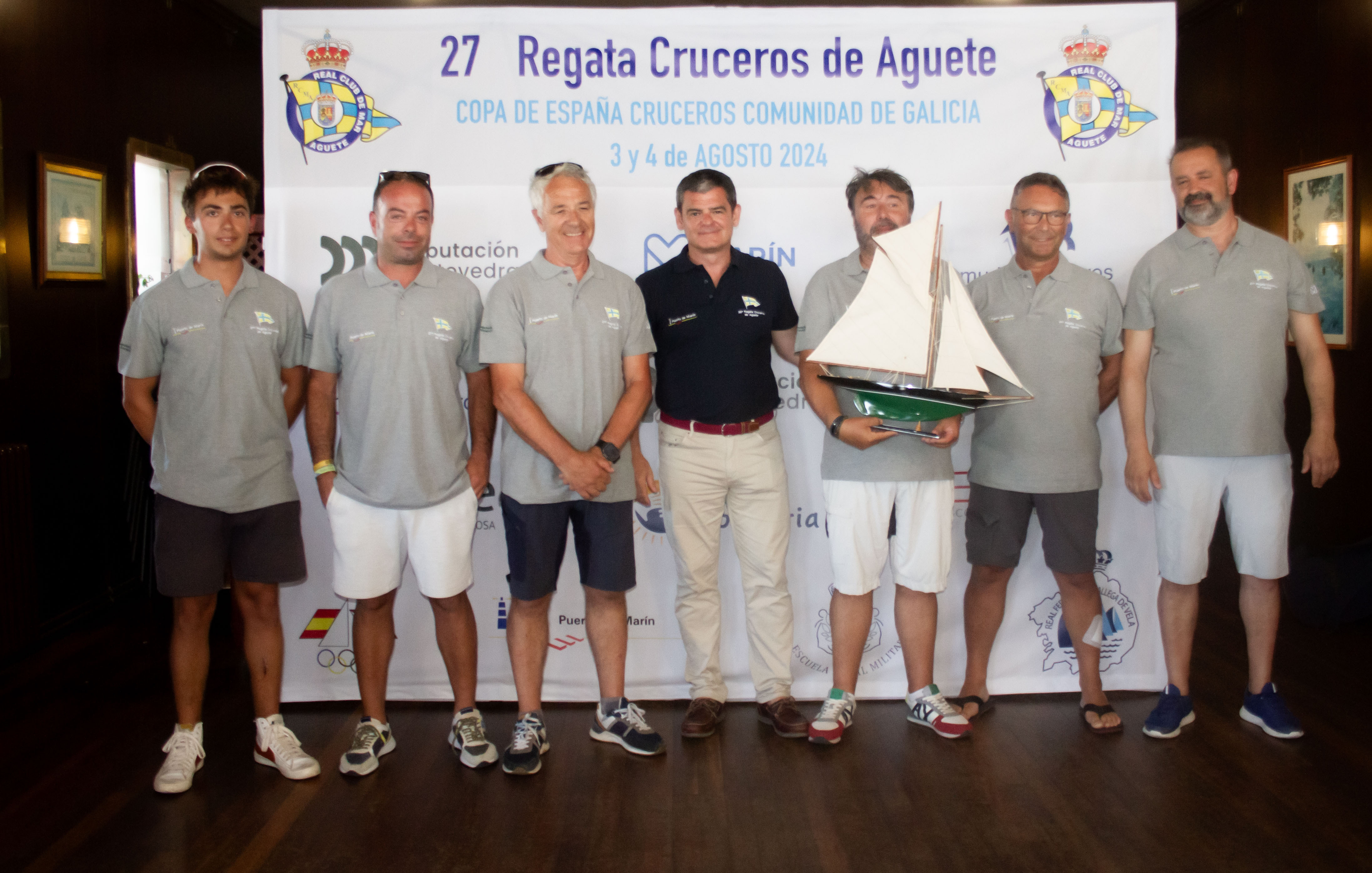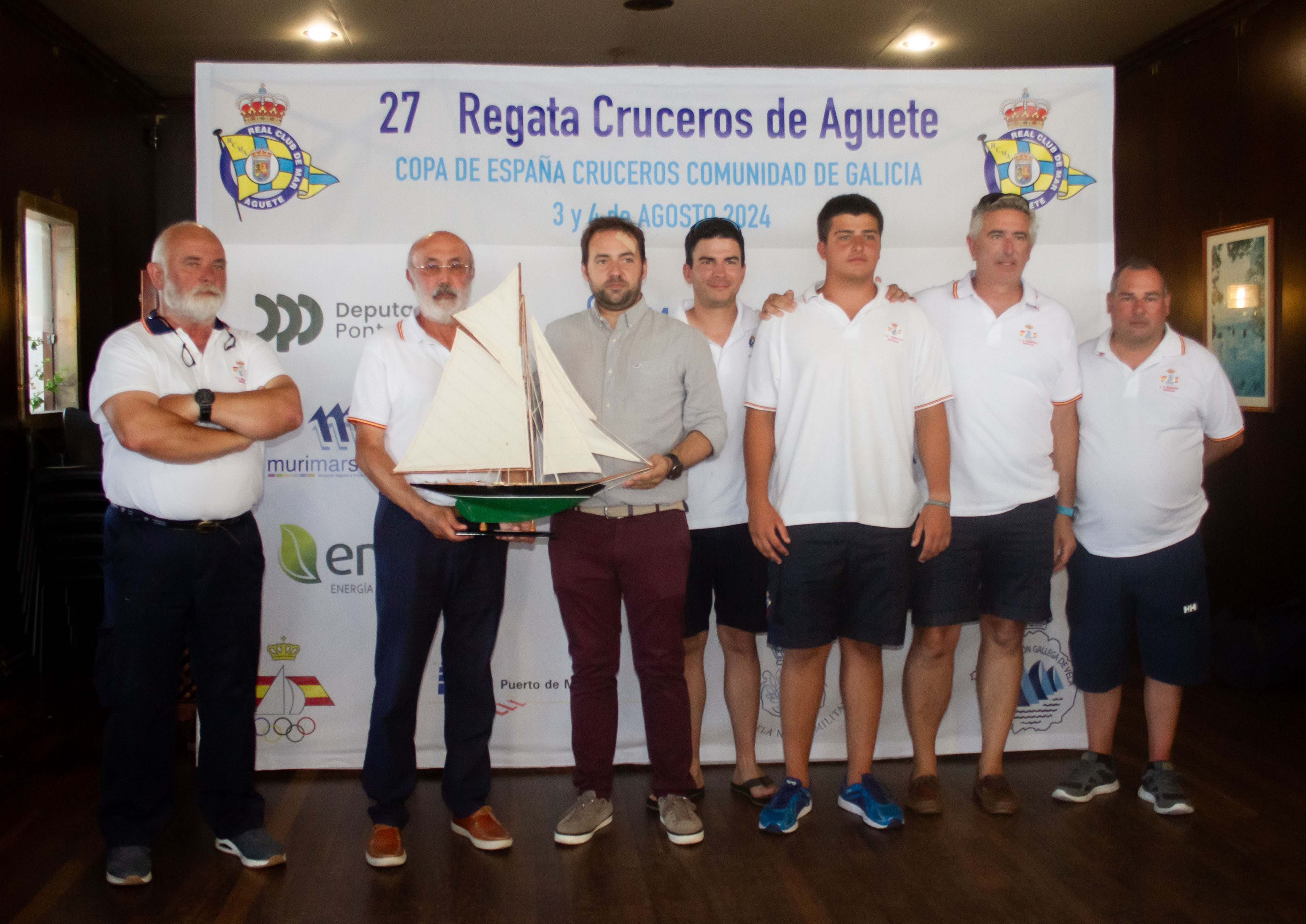 Casi dos horas con respecto al horario previsto tardó en entablarse el viento en la Ría en la jornada final dominical de la 27ª edición de la Regata Cruceros de Aguete organizada por el Real Club de Mar Aguete y la Real Federación Española de Vela, contando además con la colaboración de los organismos oficiales y firmas comerciales Concello y Porto de Marín, Deputación de Pontevedra, Escuela Naval Militar, Murimar Seguros, Luz Solidaria, Ence, Setga y Froiz.