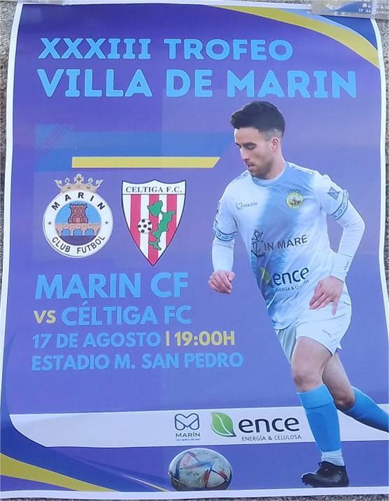 Esta tarde, a partir de las siete se pondrá en marcha el partido de fútbol entre el Marín C.F. y el Céltiga, un encuentro para disputar el “Trofeo Villa de Marín”, un torneo que ha tenido siempre considerable importancia y por el que han pasado grandes equipos gallegos en otros tiempos, cuando las categorías de la liga eran distintas a las de hoy y el Marín militaba en la antigua Tercera División.
