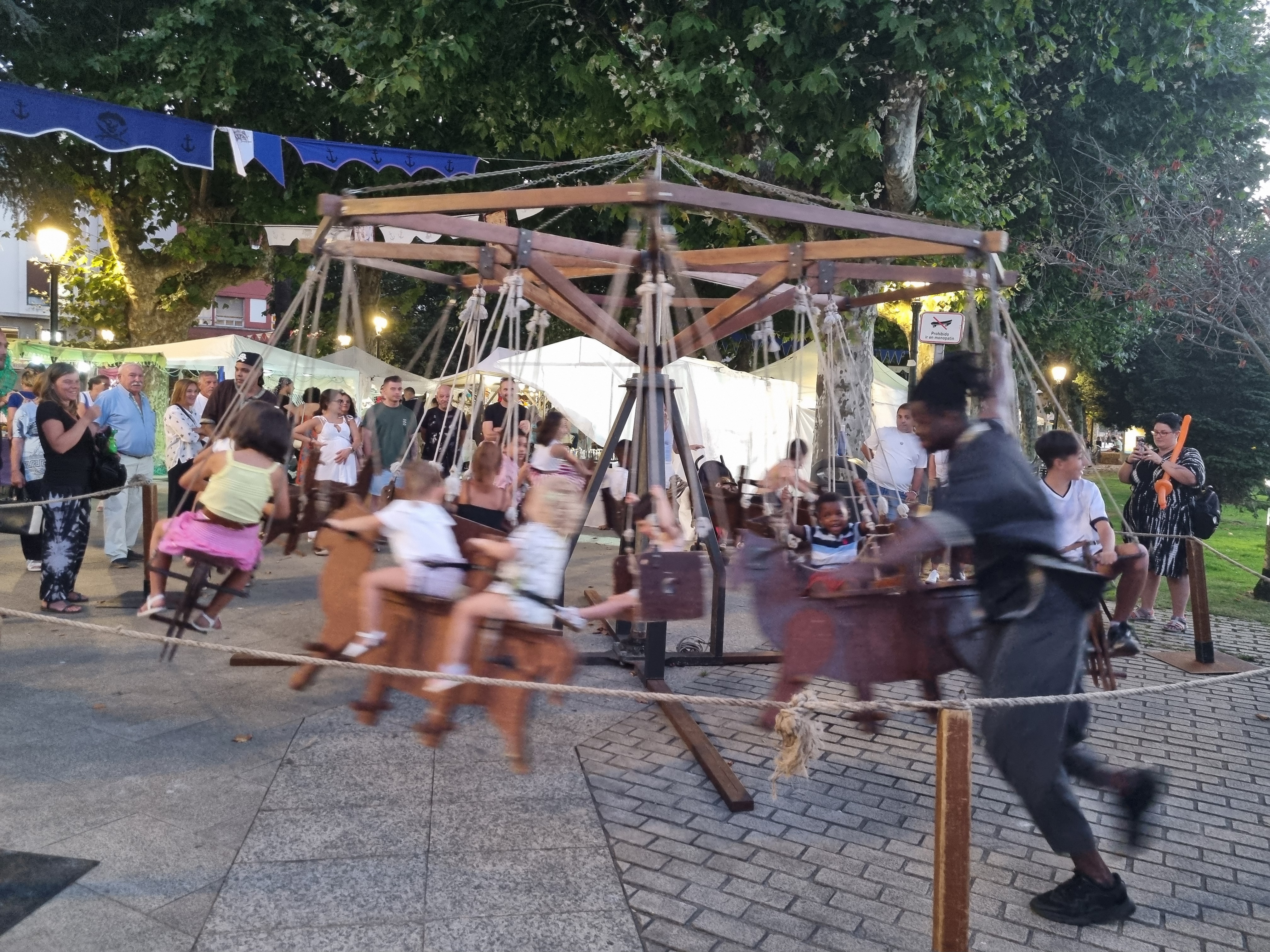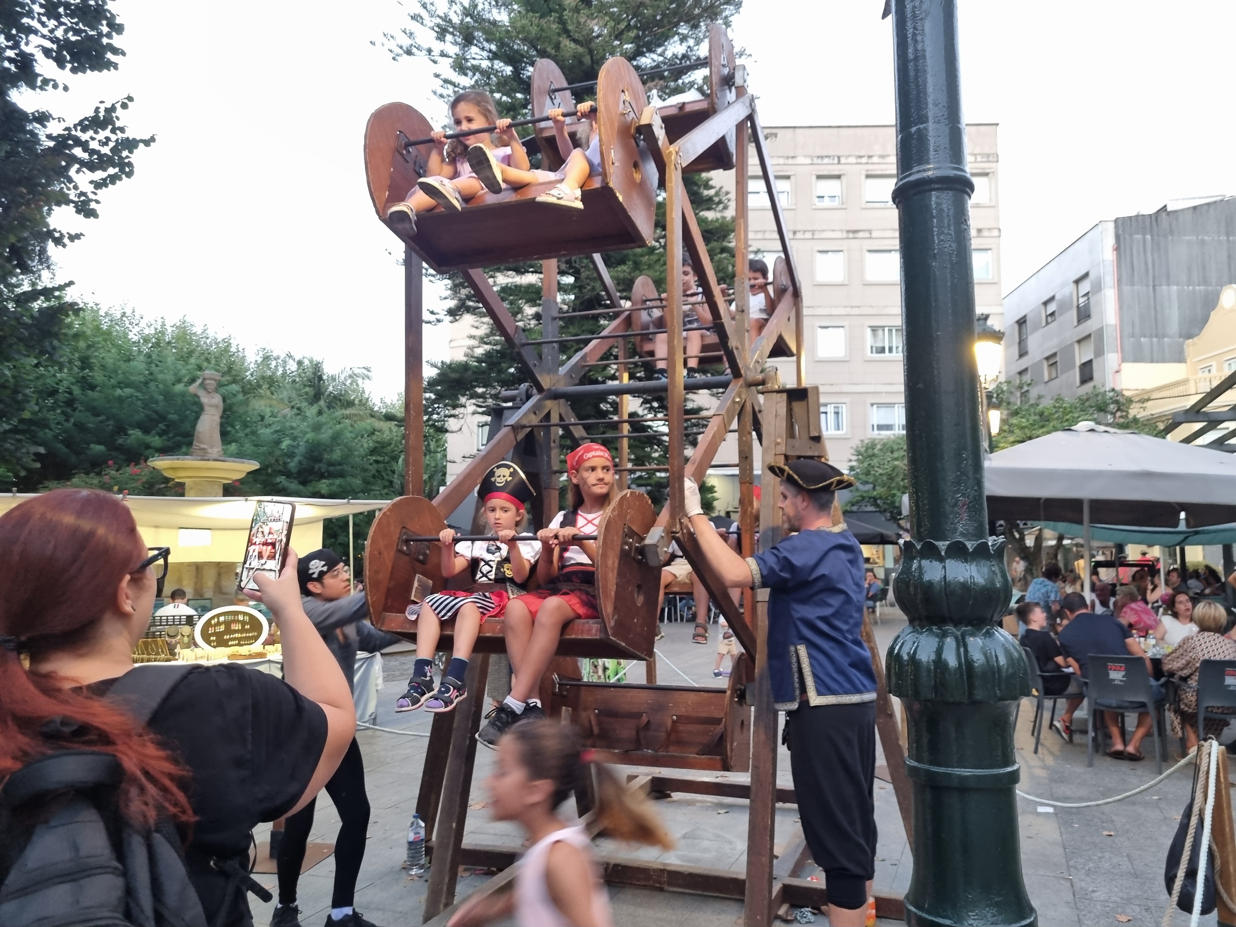 Ayer tarde se inició la fiesta corsaria que promete ser durante la jornada de hoy, multitudinaria a tenor de la cantidad de gente que ayer salió para participar en lo que fue la jornada de apertura de la singular feria que orece en la alameda “de todo” y hasta diversión para los más pequeños que pueden viajar en la noria y el carrusel de cadenas movidos ambos manualmente por los operarios que las atienden, o hacer un paseo en tren que partiendo de la alameda recorre varias calles del centro urbano.