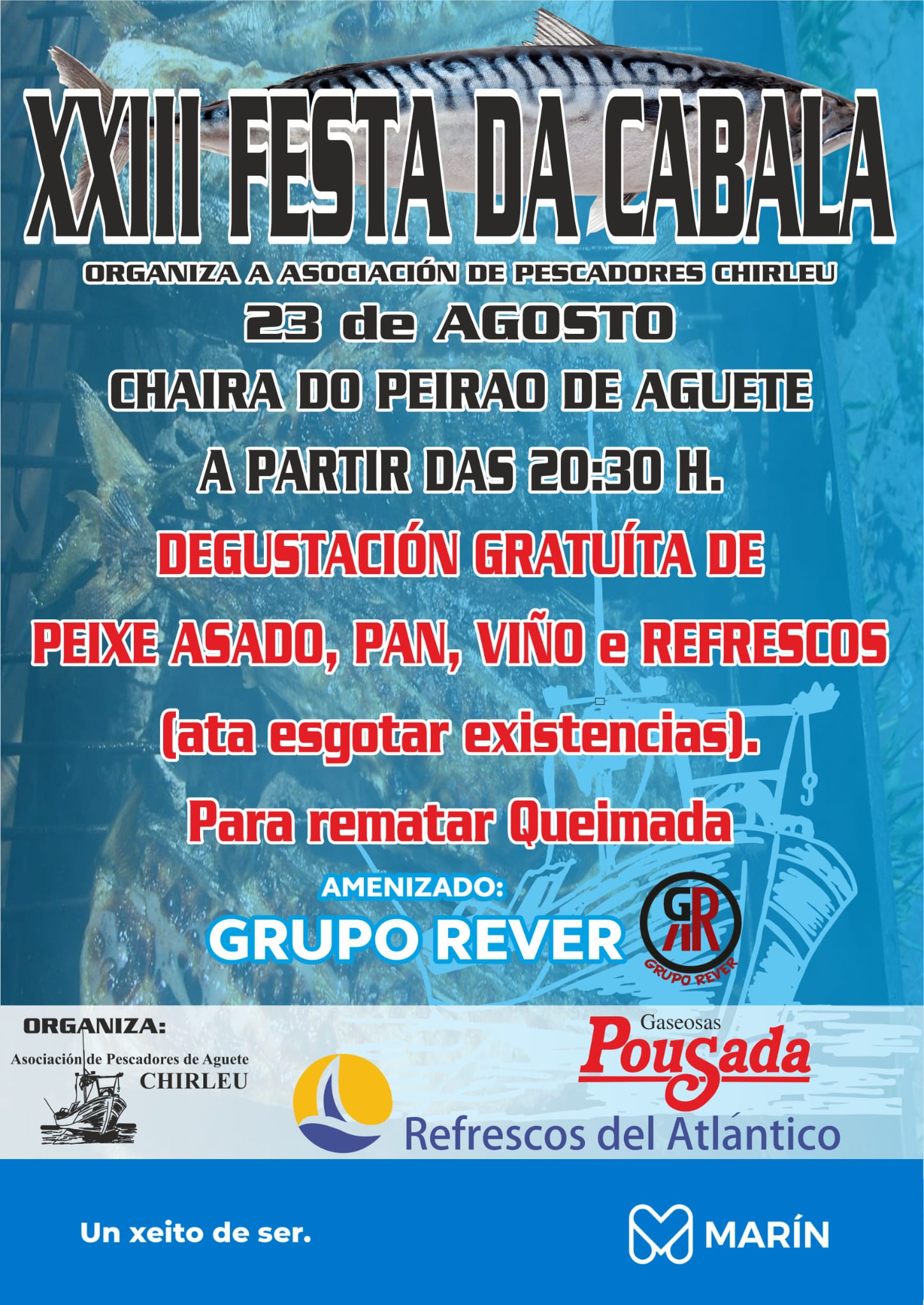 Ayer fue presentada la “XXIII Festa da Cabala” que con el apoyo municipal, organizan cada año por estas fechas de agosto los pescadores de la asociación deportiva “Chirleu” que tiene su sede en la explanada del muelle de Aguete. Será pasado mañana viernes, día 23 en e propio muelle donde se asará a la vista de los asistentes el pescado disponible.