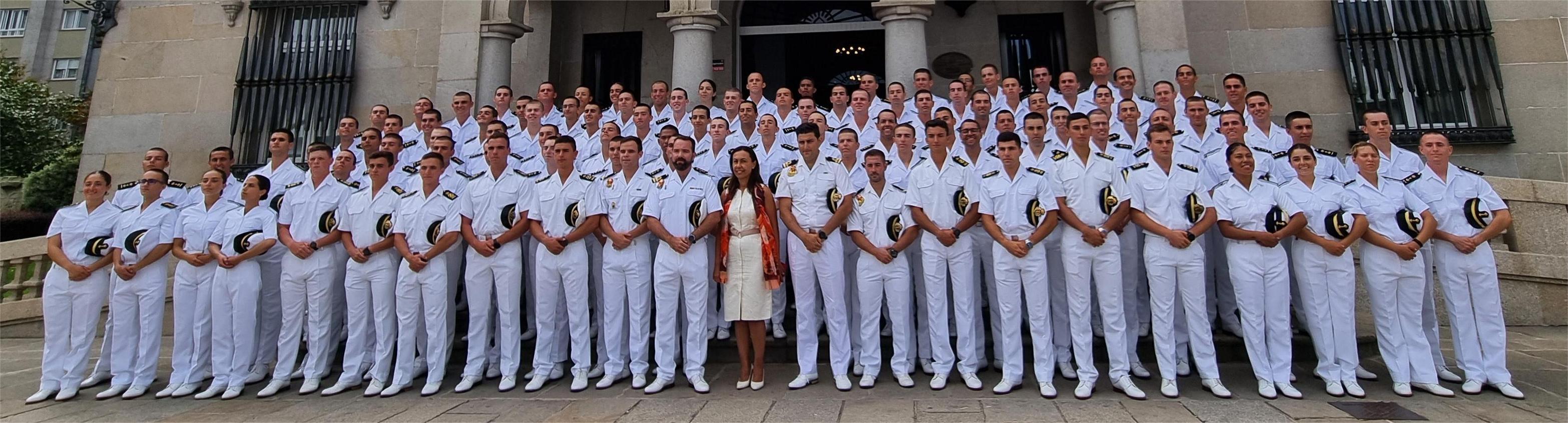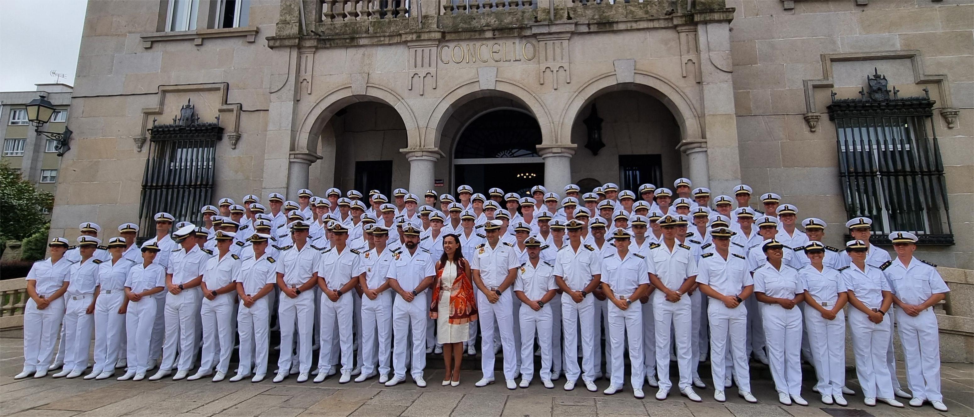El breve pero significativo acto terminó en la fachada del Concello donde se tomó la fotografía tradicional de todo el grupo ante la Casa Consistorial, imagen que se repetirá dentro de cinco años cuando hayan conseguido sus primeros galones de oficiales de la Armada y se dispongan ya a cubrir sus primeros destinos como tales.