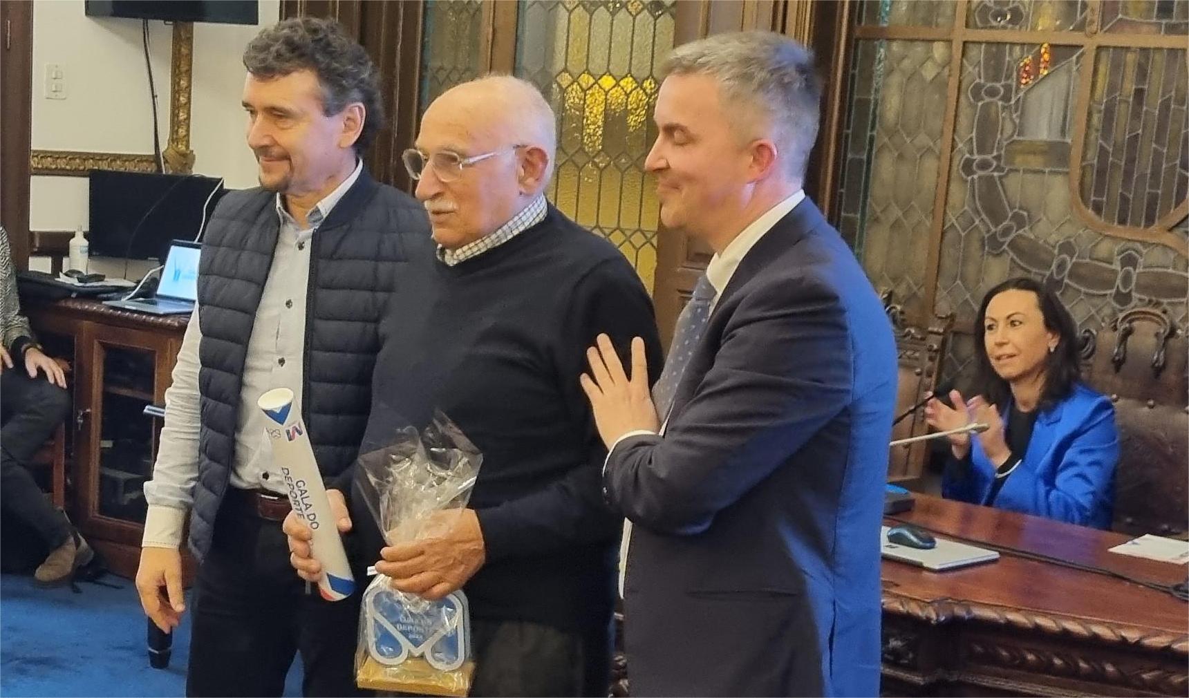 El abuelo José recogiendo el premio de Sergio en la Gala del deporte en Marín y esta vez le acompañará Jaime, su padre