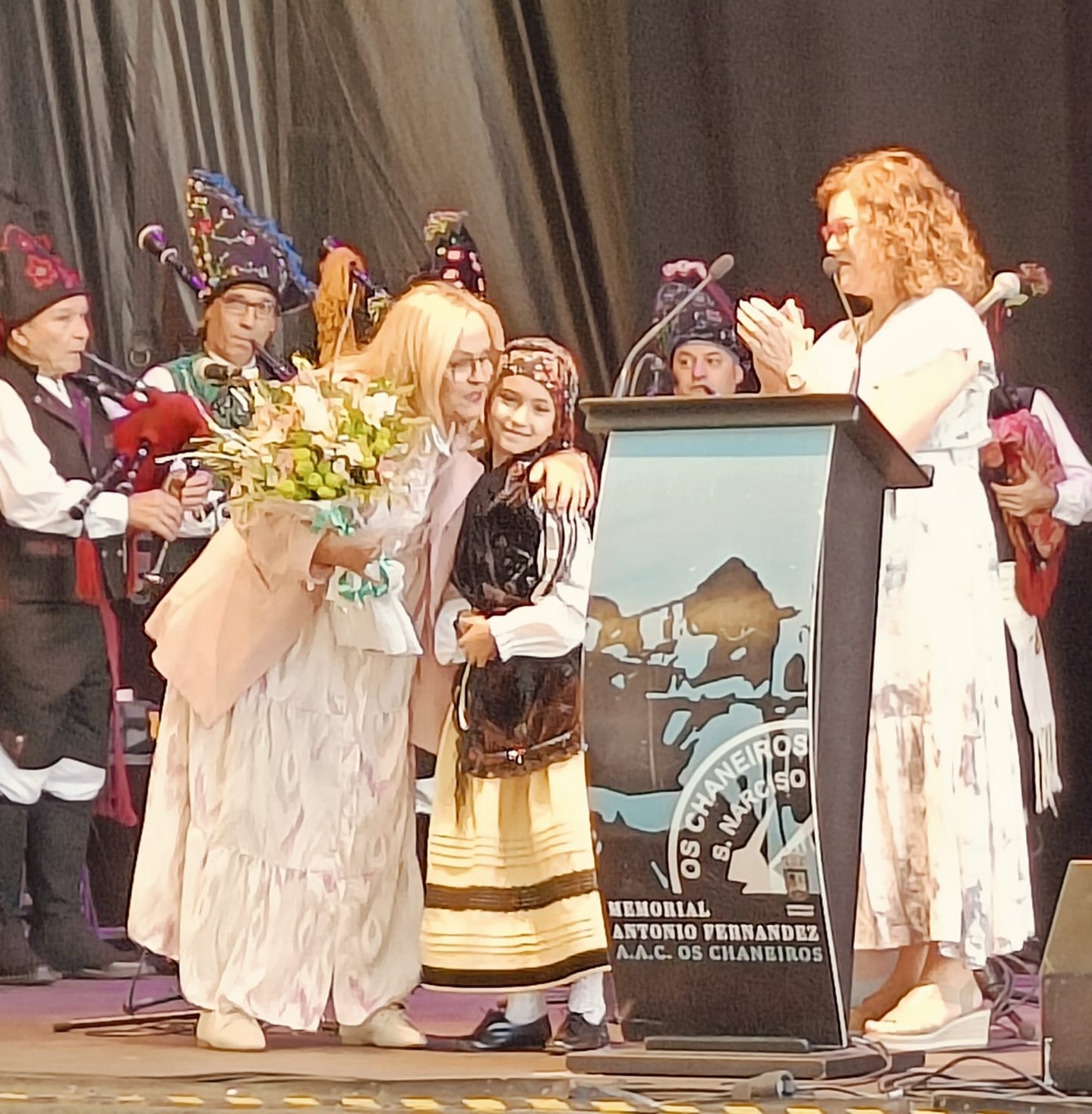 Por su parte, Anxo Lorenzo al final de su actución recibió la faja de honor que como tal fue nombrado este año aprovechando el cincuenta aniversario de la fundación del grupo y también que cumplía cincuenta años de edad, gesto que el famoso gaiteiro agradeció emocionado ecordando brevemente su paso por el colegio y su relación con Antonio Fernández de la que aprendió a dar sus primeros pasos en la música tradicional.