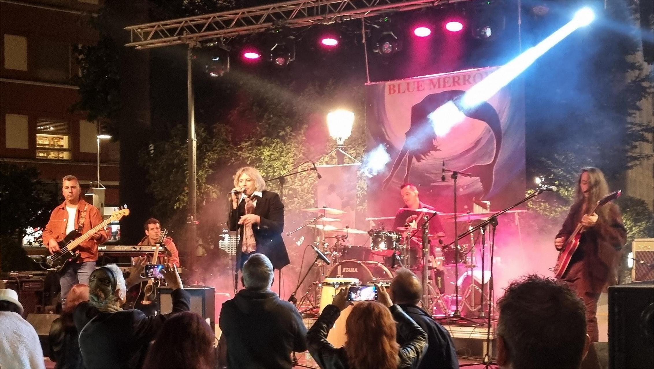 La alameda Rosalía de Castro se llenó ayer de música con dos conciertos de distinta índole ya que, si por la tarde fue la Banda de Música de Marín la que congregó a numeroso público que escuchó su concierto al que se unió la cantante Lucía que interpretó varias canciones con el fondo musical de la banda, por la noche correspondió el turno de animación a la banda rock “Blue Merrow” que por fin cumplió su deseo de actuar ante el público marinense ya que esta concierto tendría que haber sido en las fiesta de La Patrona, a principios de este mes pero hubo que trasladarlo a ayer por las inclemencias del tiempo.