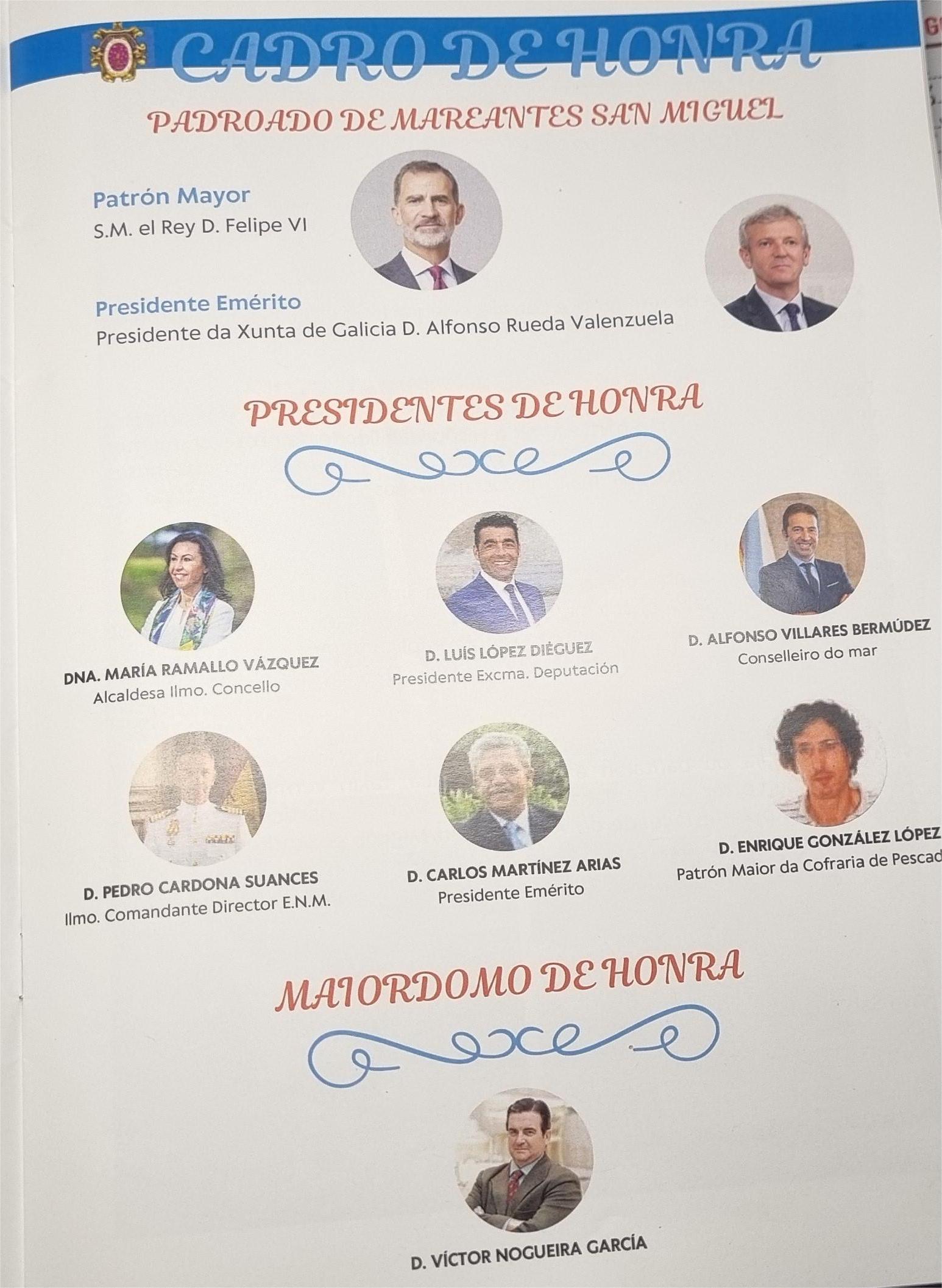 Desde la fundación del “Padroado de San Miguel”, en el año 1997 en el seno del Ateneo Santa Cecilia, se designó como “Patrón Mayor” al entonces Príncipe de Asturias Don Felipe de Borbón y se mantiene en la cúspide del organigrama del padroado siendo actualmente el Rey Felipe VI. Estos días Don Felipe y su esposa la Reina Leticia estuvieron en la Escuela Naval con motivo del cuarenta aniversario de su paso por esta academia militar de la Armada, motivo que, junto con la coincidencia de su padre el rey Emérito y su hija Doña Leonor, alumna de la Escuela, motivó un breve encuentro familiar entre todos, según indicó la Casa Real, y además generó una enorme expectación mediática ya iniciada por otros motivos extrafamiliares.