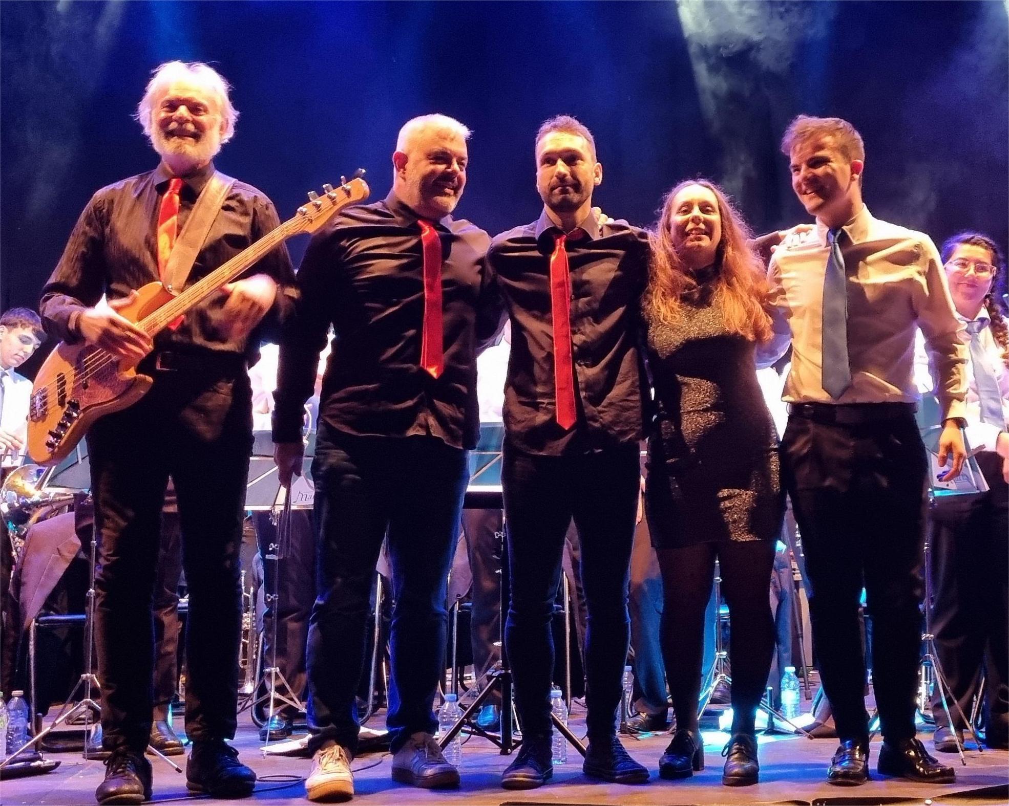 Pues a la hora de felicitar deberíamos hacerlo uno por uno a todos los componentes de la banda de música conscientes que somos del esfuerzo que han tenido que hacer para llegar a tan espectacular calidad interpretativa; al los componentes de la “zona rock” que aportaron ese complemento de modernidad del que las bandas de música carecen desde siempre y, de forma especial, a Lucía por su aportación vocal al acto en perfecta connivencia con el grupo y con el director de la banda, maestro