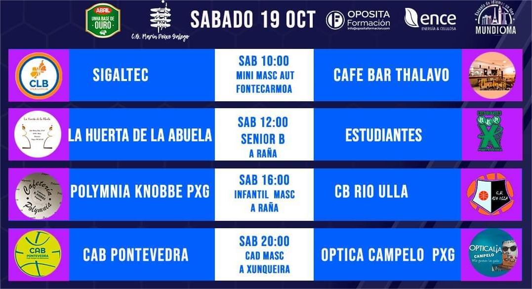 Este fin de semana contiene una intensa actividad de los equipos del club de baloncesto “Peixe galego” cuyo conjunto de FEB “Oposita Marín ENCE Peixegalego” viaja a Oviedo donde dará sus primeros pasos en la competición dado que la primera jornada hubo de ser suspendida a causa del temporal que afectó a las instalaciones del pabellón de A Raña.