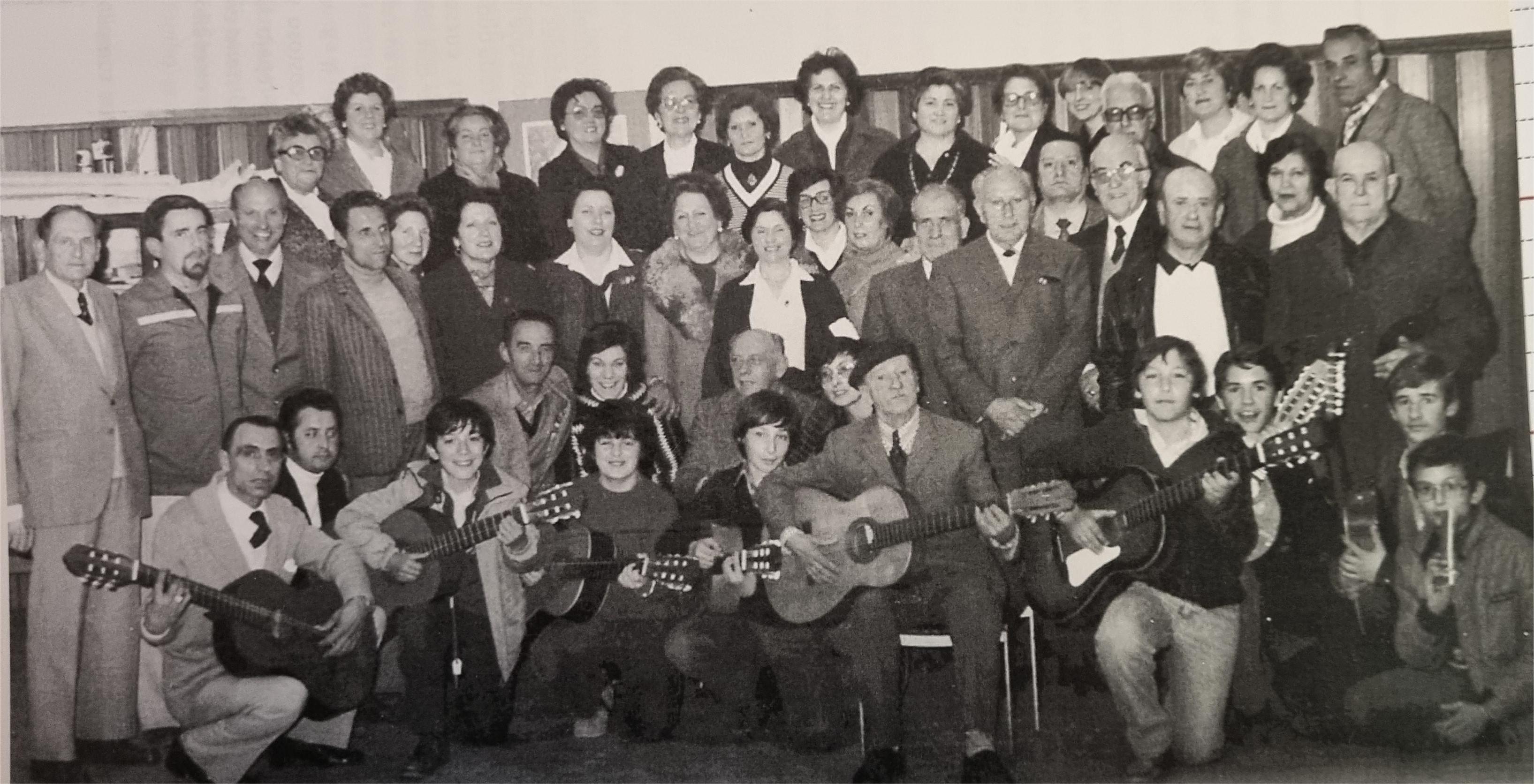 Un cuarto de siglo tiene esta fotografía en la que aparecen los componentes del coro-rondalla “Os Tunantes” que fueron derivando con los años, perdiendo la música de cuerda y convirtiéndose en la polifónica “Lembranzas” aunque en la actualidad solo queda una mujer que, curiosamente, no está en esta foto.