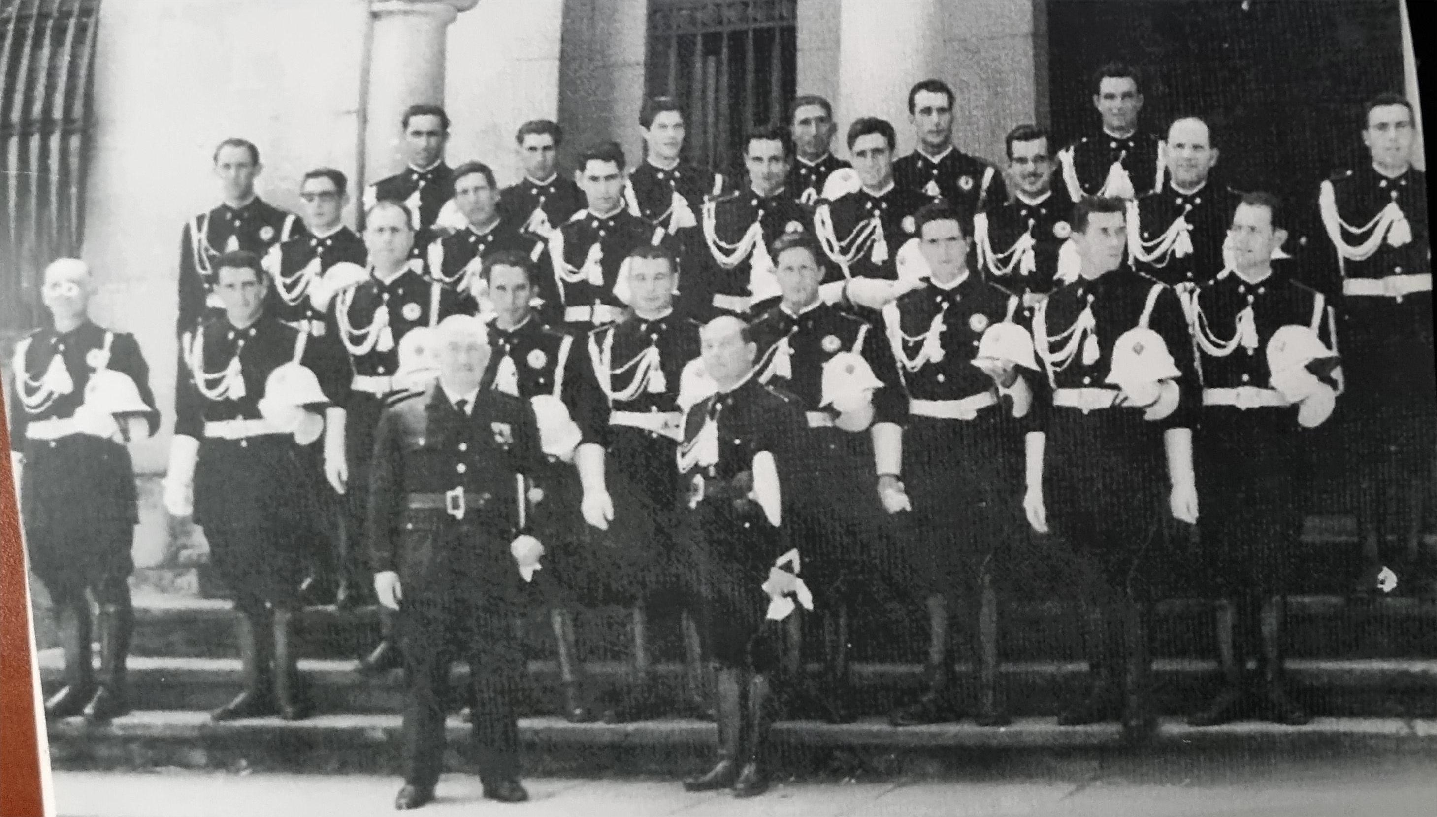 Cada año participaban en las procesiones de Semana Santa, en las del Corpus o en La Patrona así vestidos de gala, con sus jefes a la cabeza, el señor Andión y su segundo, Jesús Lamela desfilando con elegancia y vestidos de gala. Y debió ser en una ocasión de esas en que, aprovechando que estaban todos, se hicieron esta fotografía que rondará los cuarenta años de antigüedad en la fachada del Concello.