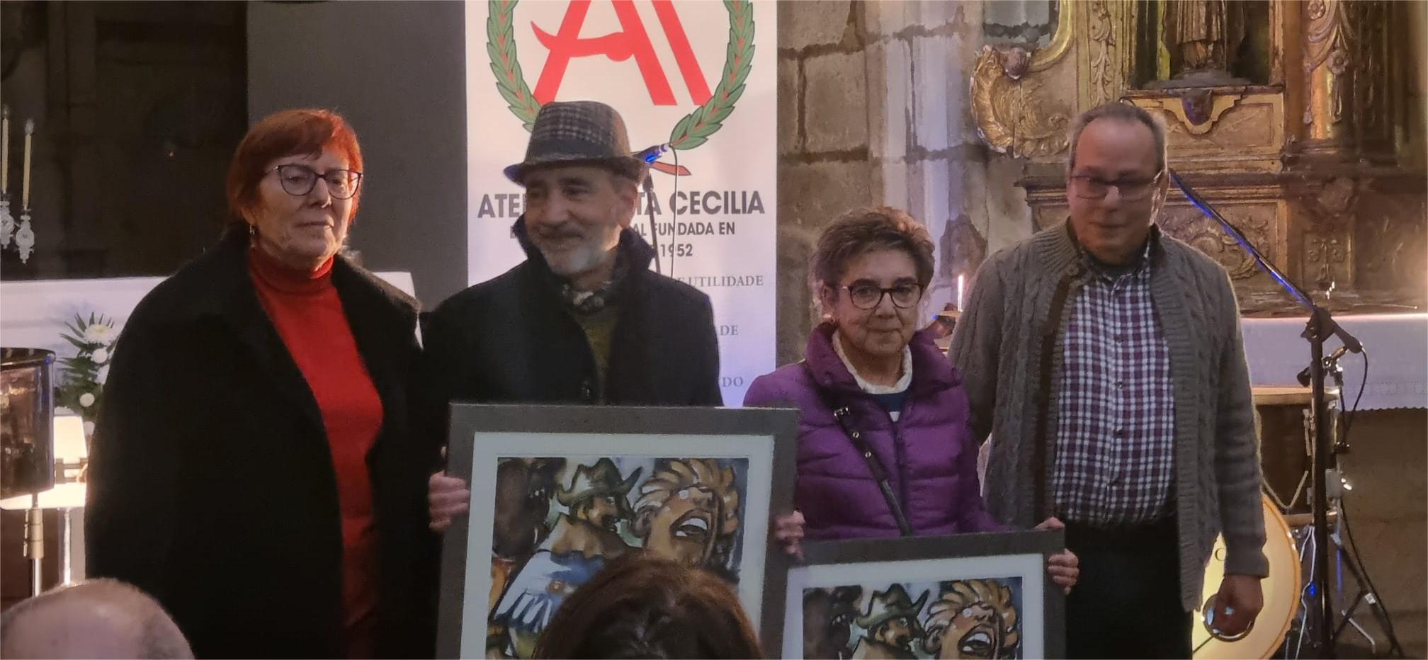 El acto tuvo lugar en el Antiguo Templo donde para honrar la celebración de la fecha, actuó el cuarteto “Songalia” y, al inicio del concierto se procedió al homenaje a los socios más antiguos y en este caso a Merchi Davila Carral y Miguel Villanueva Graña que recogieron la tradicional reproducción de un famoso cuadro de Manuel Torres que el Ateneo guarda para esta ocasión concreta.