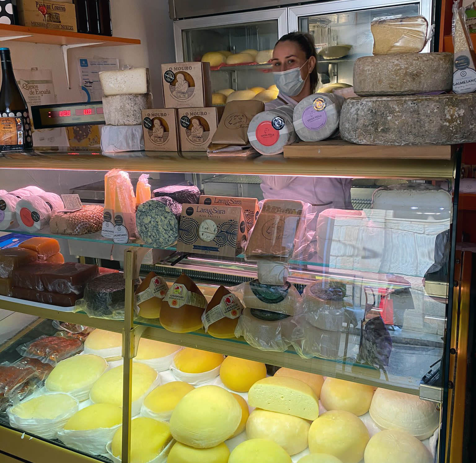 Hasta aquí me he traído un pequeño trozo de nuestra Plaza de Abastos, un surtido exquisito de quesos gallegos de vaca y de cabra, elegidos justo en el local que se encuentra frente a la puerta de entrada al Mercado. Regentado por dos hermanos, Rita y Alberto, con un nombre más que atractivo: “O sabor de sempre”. Son queseros de tercera generación. Su abuela empezó hace más de 40 años en la Plaza a vender quesos, después su madre y ahora, ellos. Sus raíces familiares se encuentran en Mourente, aunque el negocio lo han tenido siempre en la Plaza de Marín o en sus alrededores.
