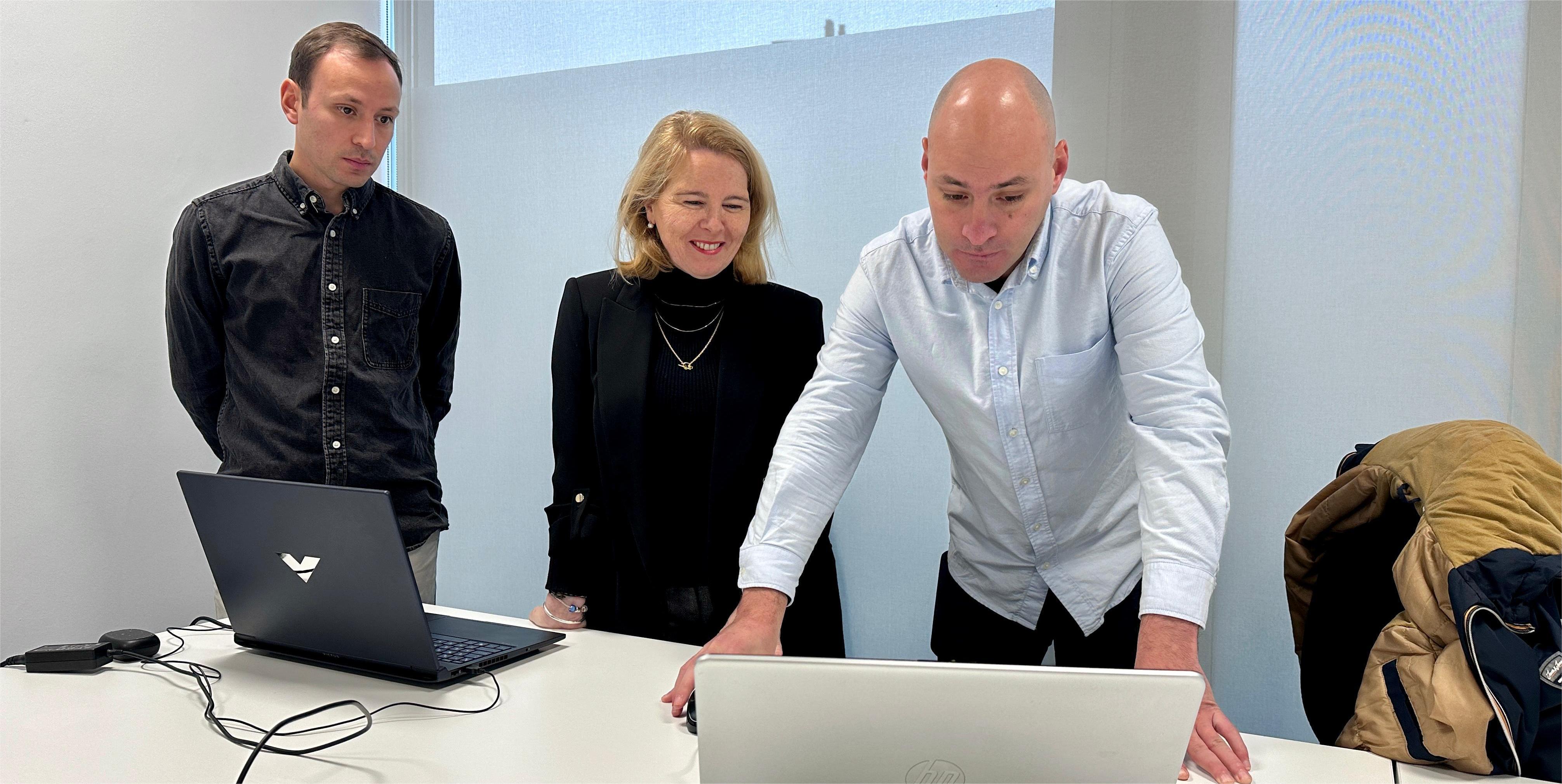 La concejala de Promoción Económica, Beatriz Rodríguez, visitó las instalaciones del Parque Azul para saludar a los dos promotores de la empresa “Club Management Group” que desde noviembre aprovechan esta infraestructura que pretende impulsar a las nacient4es empresas que se instalan en ella
