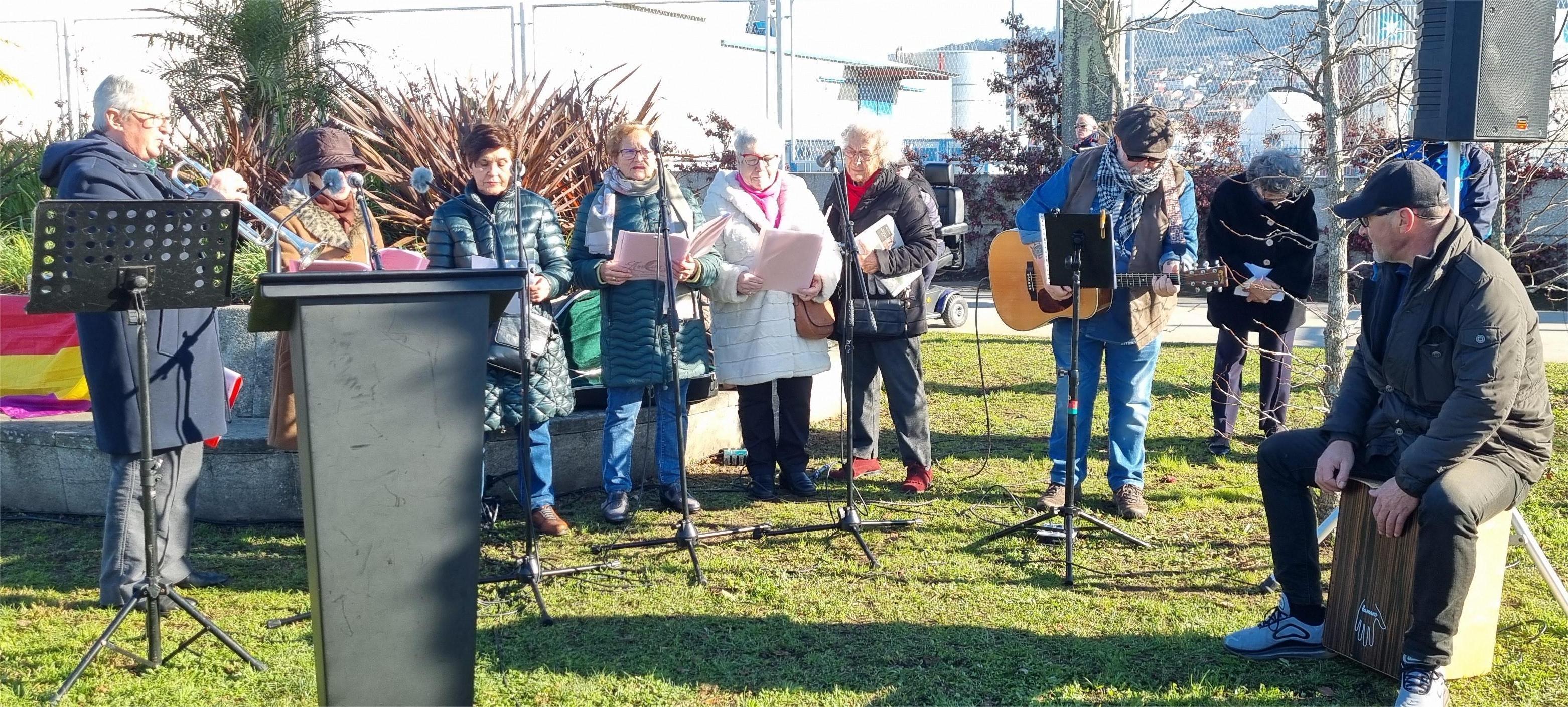 El acto contó con la participación de un grupo musicovocal que se unió al “Ulises Trío” para cantar unas piezas y terminó con el Himno Galego seguido por la mayoría de os asistentes.