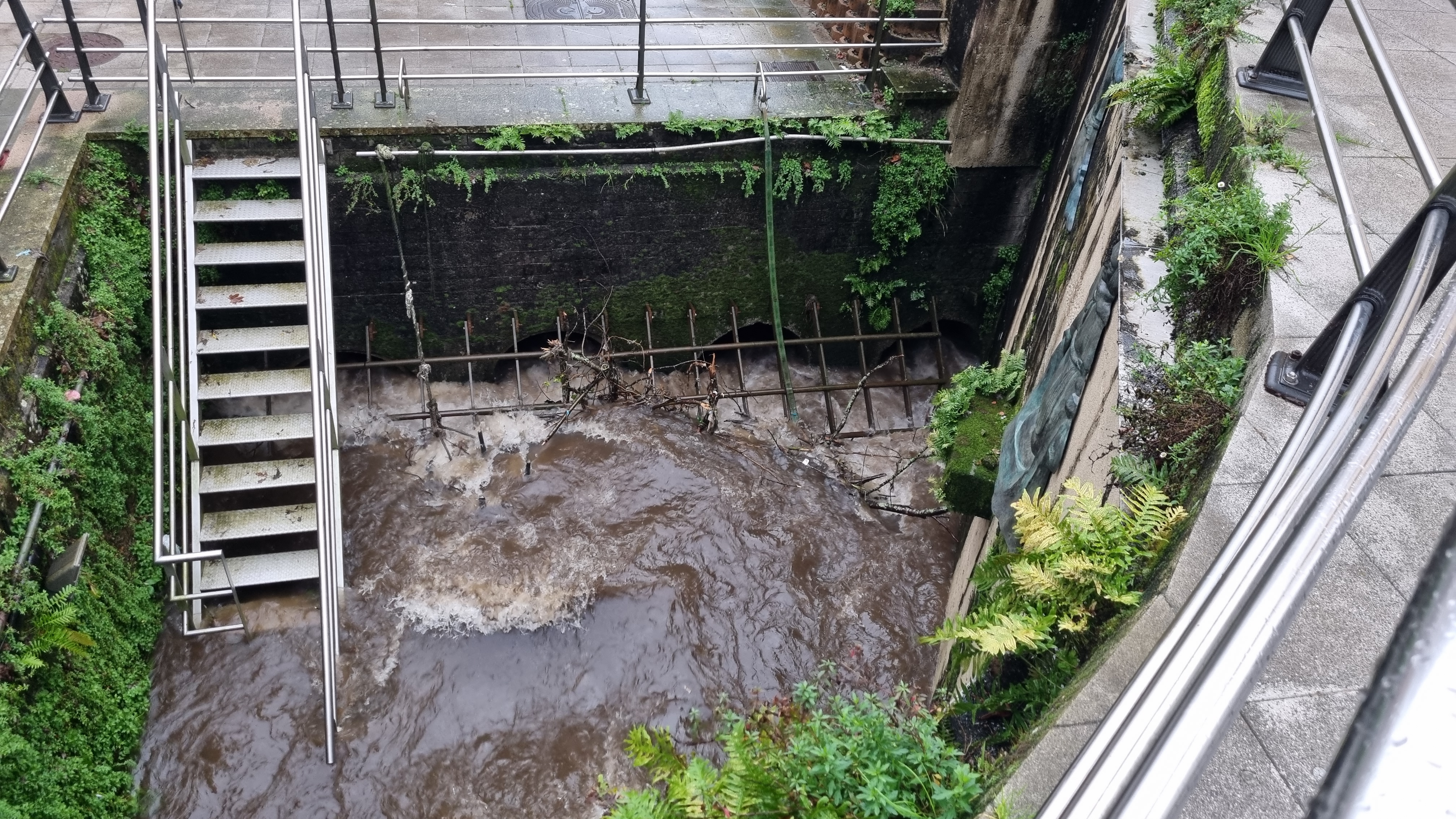 embocadura del Lameiriña que, a las seis de la tarde de hoy mismo no presentaba peligro de desborde todavía aunque sí un notable incremento de caudal.