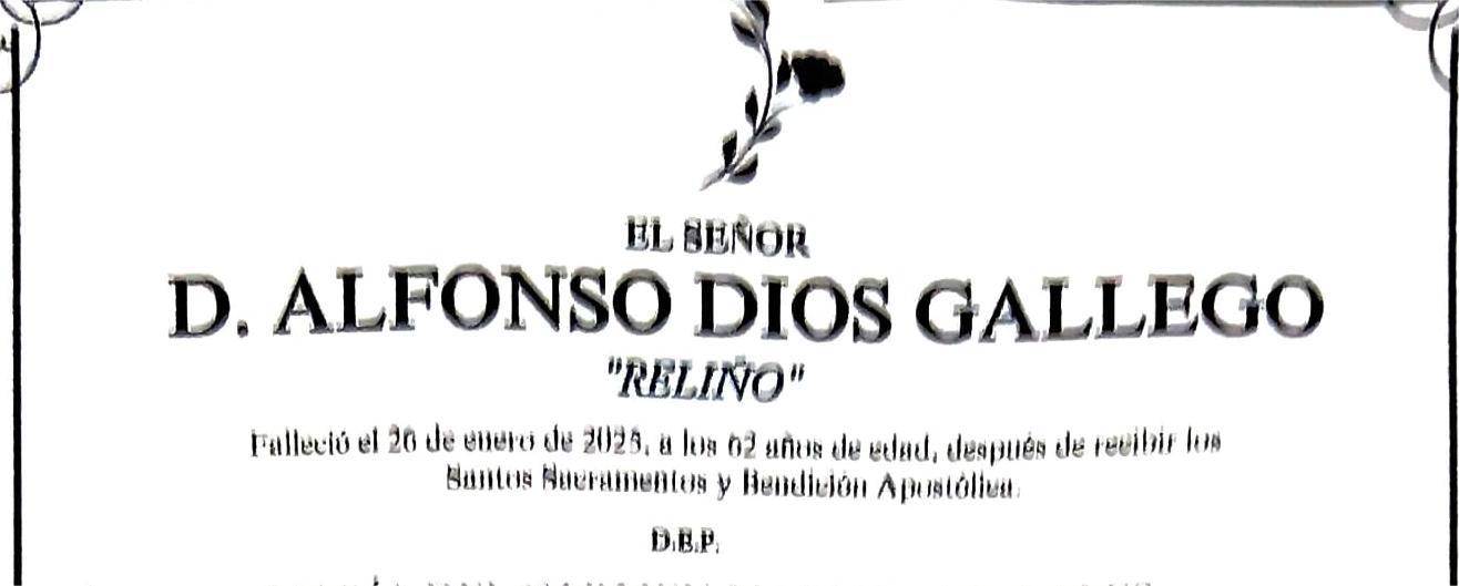 La funeraria SAN MARCOS comunica el fallecimiento en el día de hoy, de D. ALFONSO DIOS GALLEGO cuyos restos mortales permanecen en el Tanatorio San Marcos de Marín, sala número 2 hasta el momento de su traslado, mañana lunes día 27, a las cinco y cuarto de la tarde, al cementerio municipal de Cela (Bueu) para su inhumación