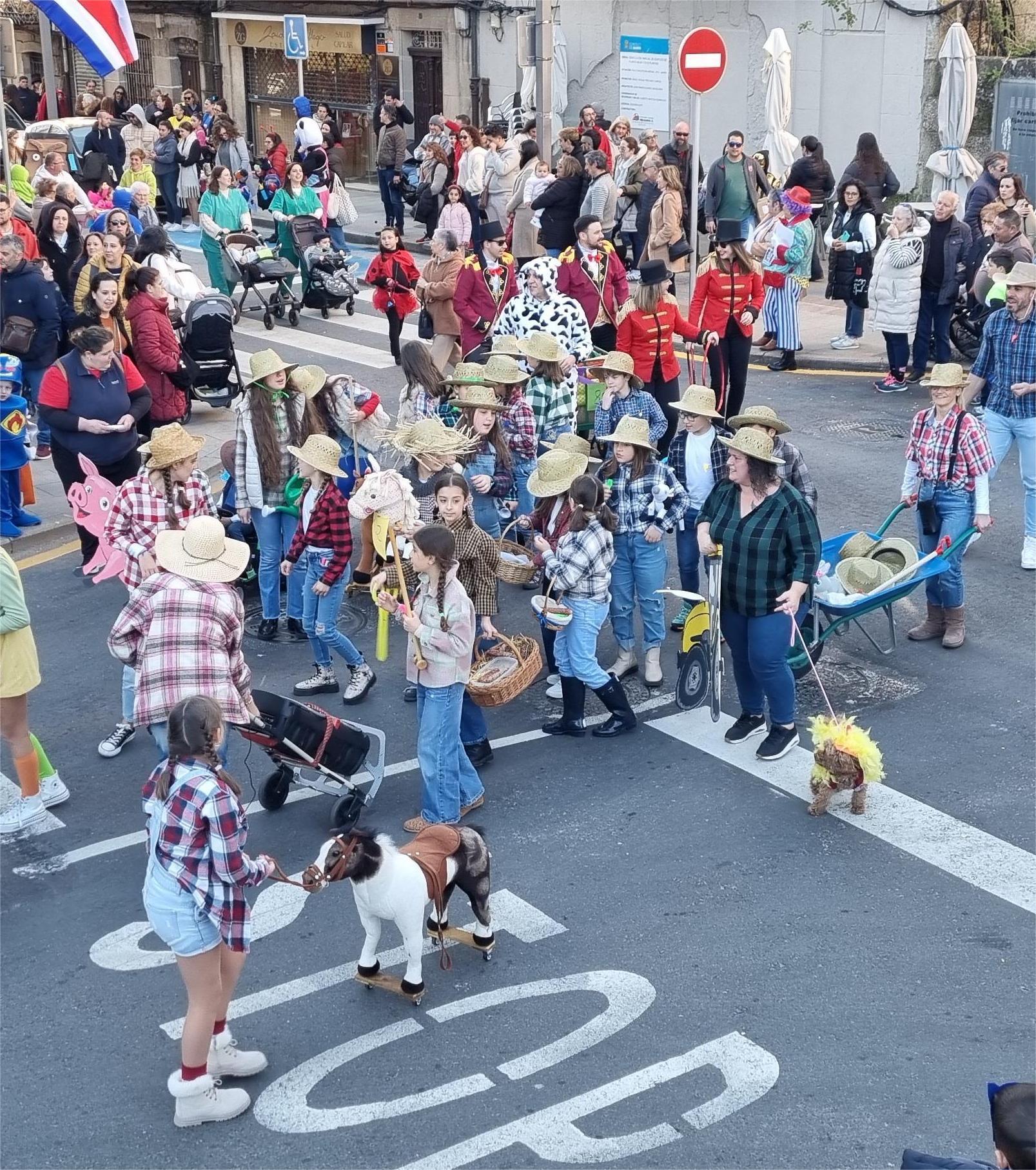 Las comparsas y los grupos procedentes de colegios representaron la mayoría de los disfraces presentados al concurso y en menor cantidad hubo presencia de parejas o disfraces individuales aunque algunos de ellos merecieron el elogio del numeroso público que presenció la marcha iniciada en la Alameda que discurrió por Real, Sol, Jaime Janer y Concepción Arenal para desembocar en el Parque Eguren donde se celebró la fiesta final en la que no faltaron las filloas de costumbre, música y animación hasta la entrega de los premios otorgados por el jurado que formaron miembros de la Corporación y personas relacionadas con asociaciones y entidades locales. Como siempre ocurre, no a todos les pareció bien el reparto de premios pero es una situación que se repite cada año en casos similares.