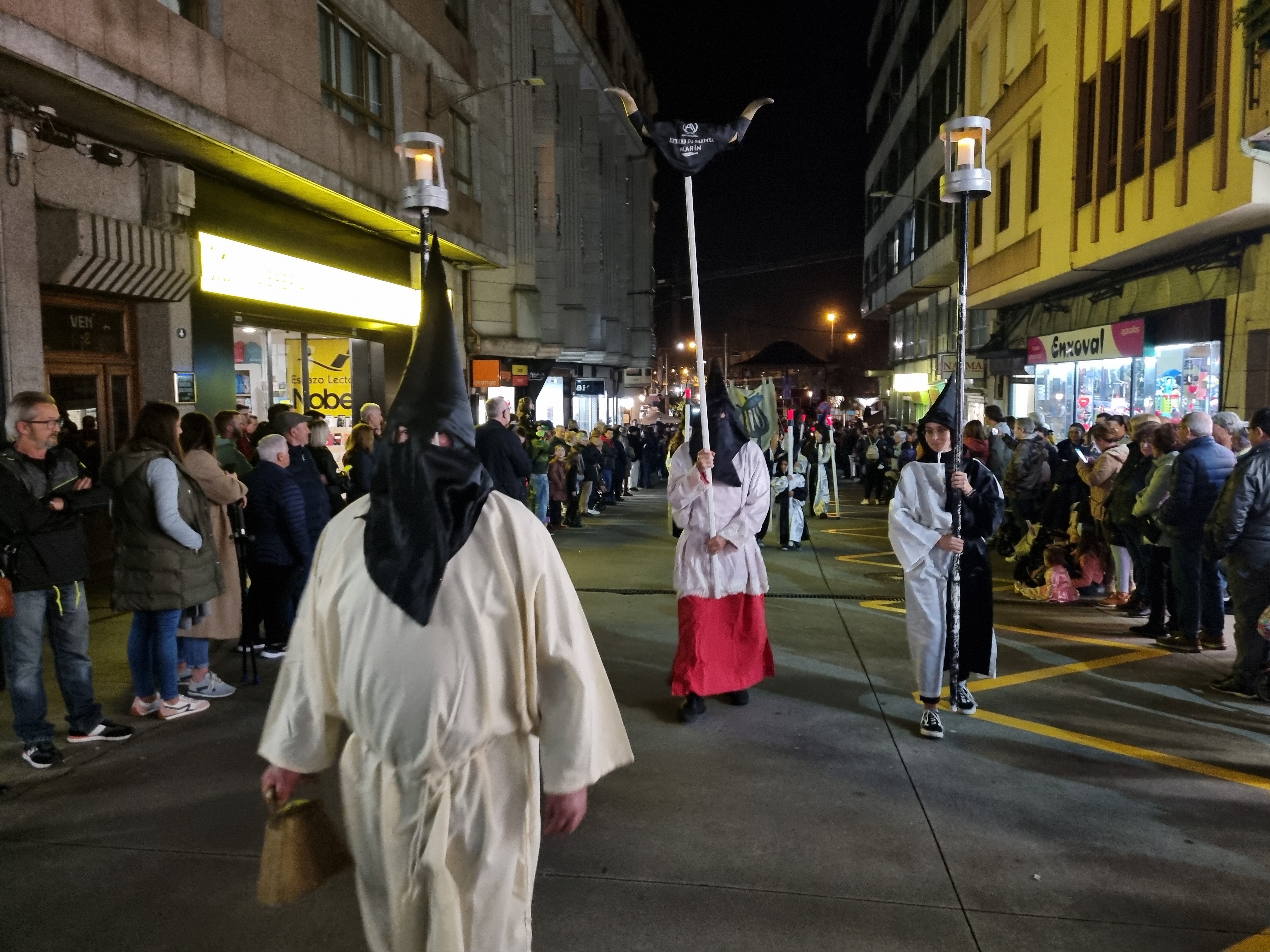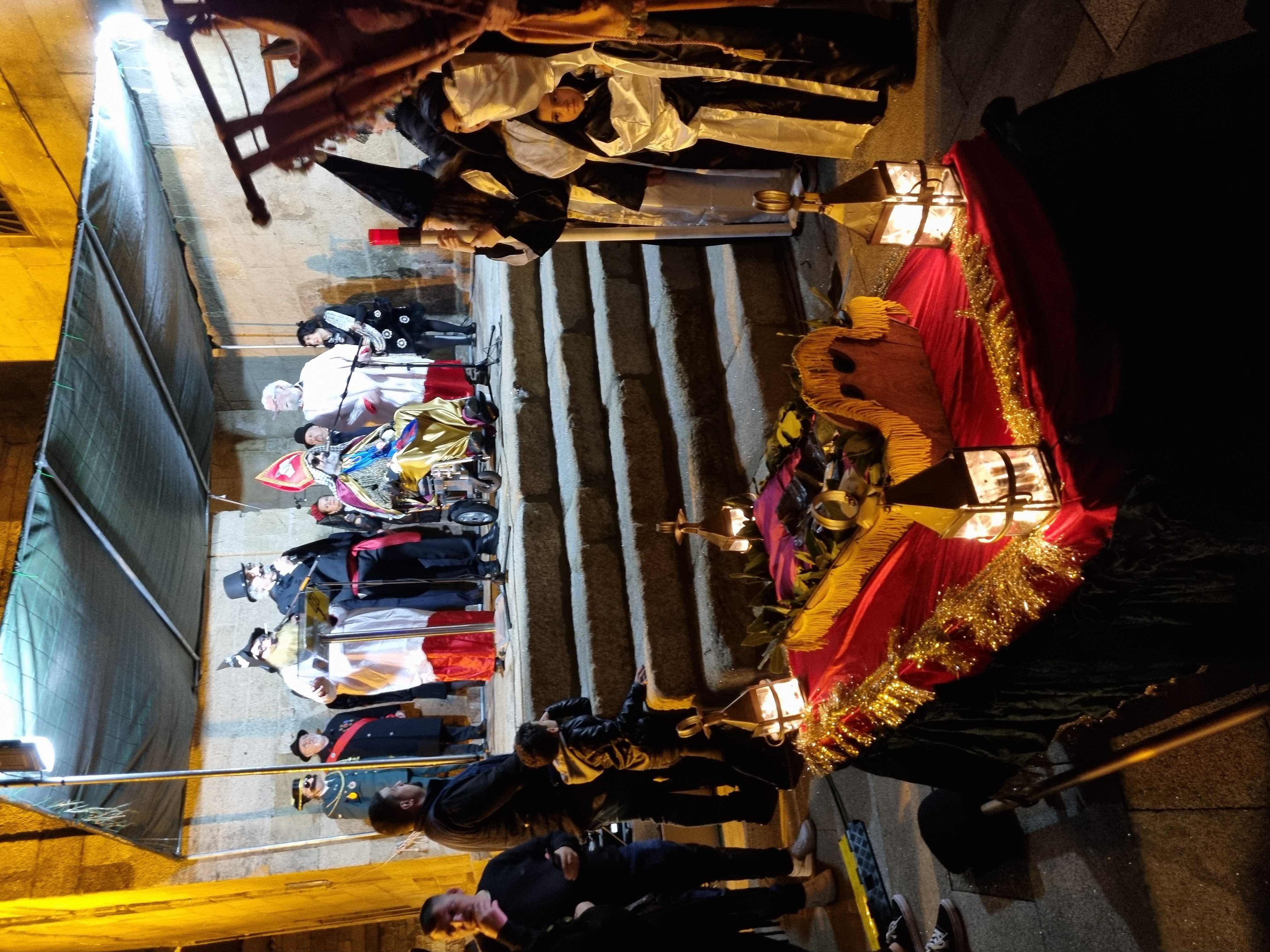Tras desta composición as viuvas, a maioría de loito rigoroso (e digo a maioría porque sempre hai algunha máis aqueladiña que fai de tripas corazón). E chora que chora, berro que berro, tras o percorrido inicial, a procesión ha chegar a Rúa do Sol onde, na escalinata de cerimonia, está instalada a parafernalia necesaria para semellante acontecemento.