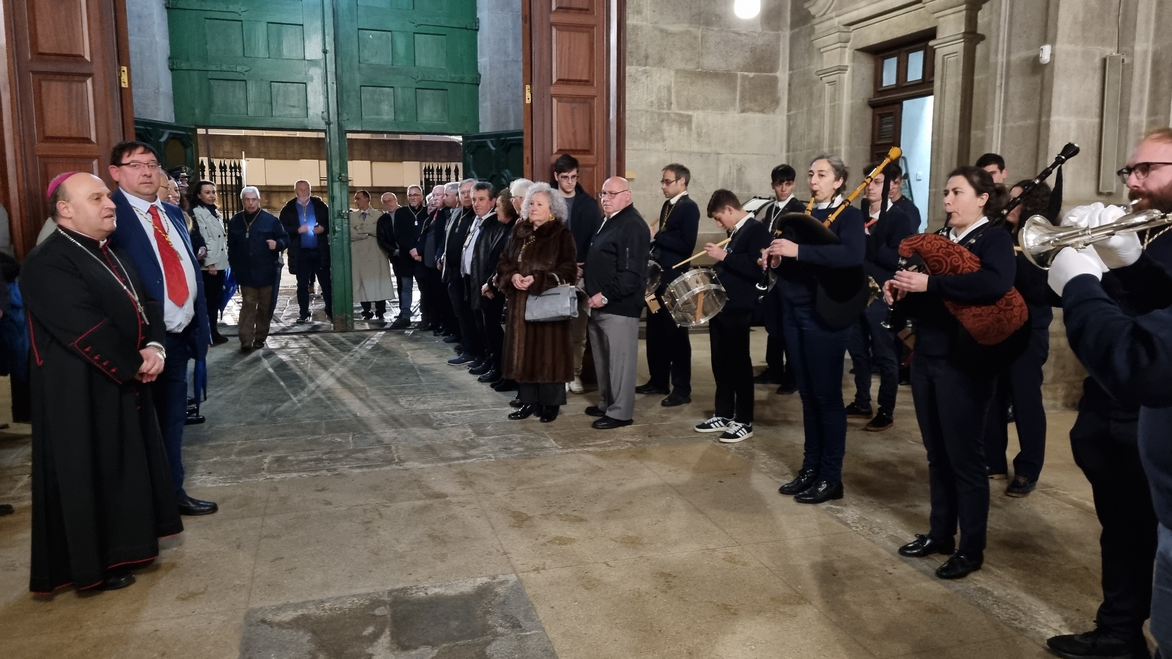 la Banda de Cornetas y tambores de la misma entonaba música de recibimiento al prelado.