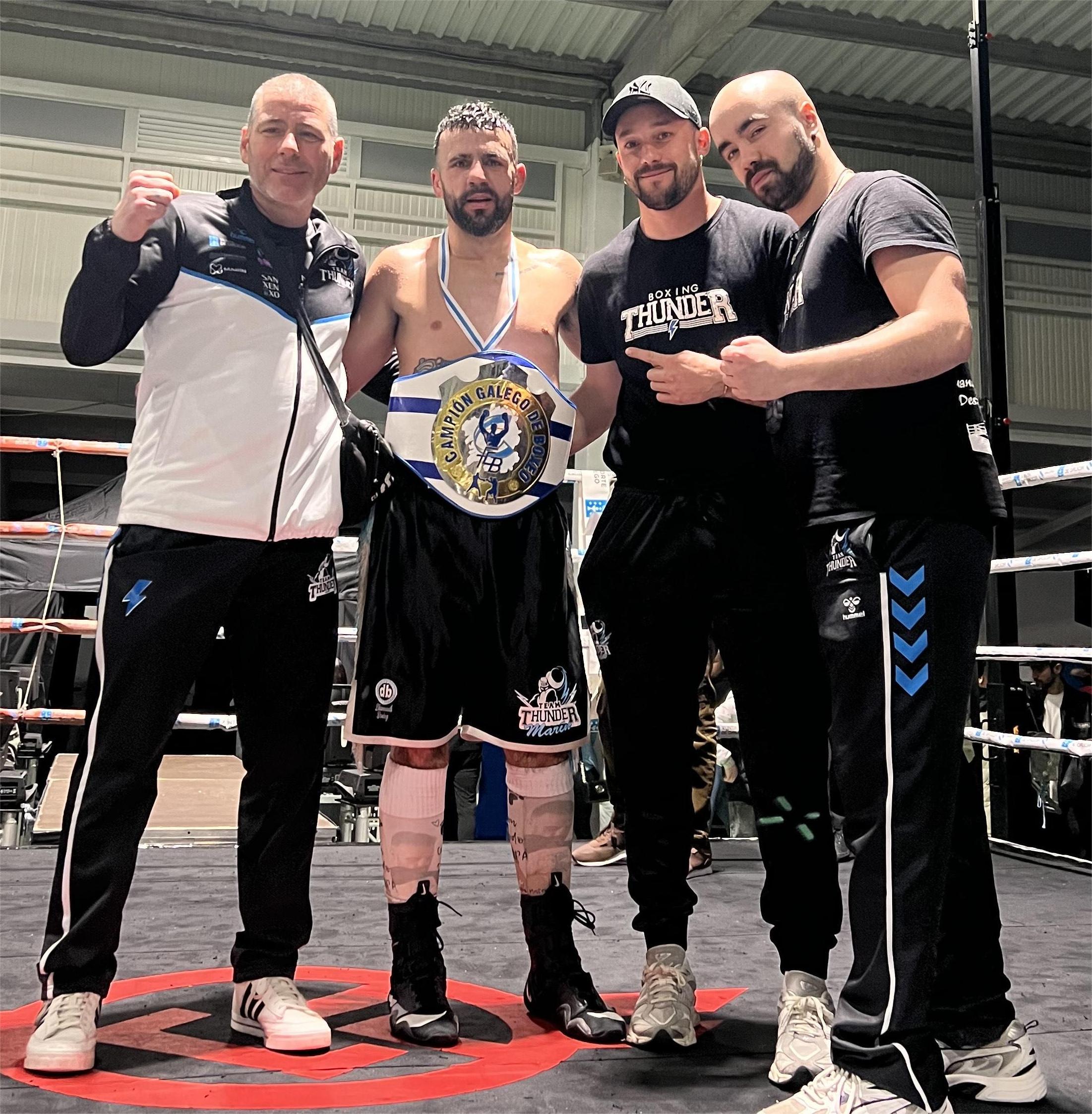 Cabe destacar que estos tres últimos combates tenían el aliciente extra de celebrarse a 5 asaltos y con el cinturón gallego NeoProfesional en juego. En ellos fueron 3 boxeadores del club marinense Team Thunder los que asaltaron el título cayendo en dosa favor de los boxeadores locales pues, Xabi Abal demostró la puntería de un francotirador contactando manos claras de principio a fin y ganando el combate de manera clara proclamándose nuevo campeón gallego NeoProfesional en el peso superwelter.