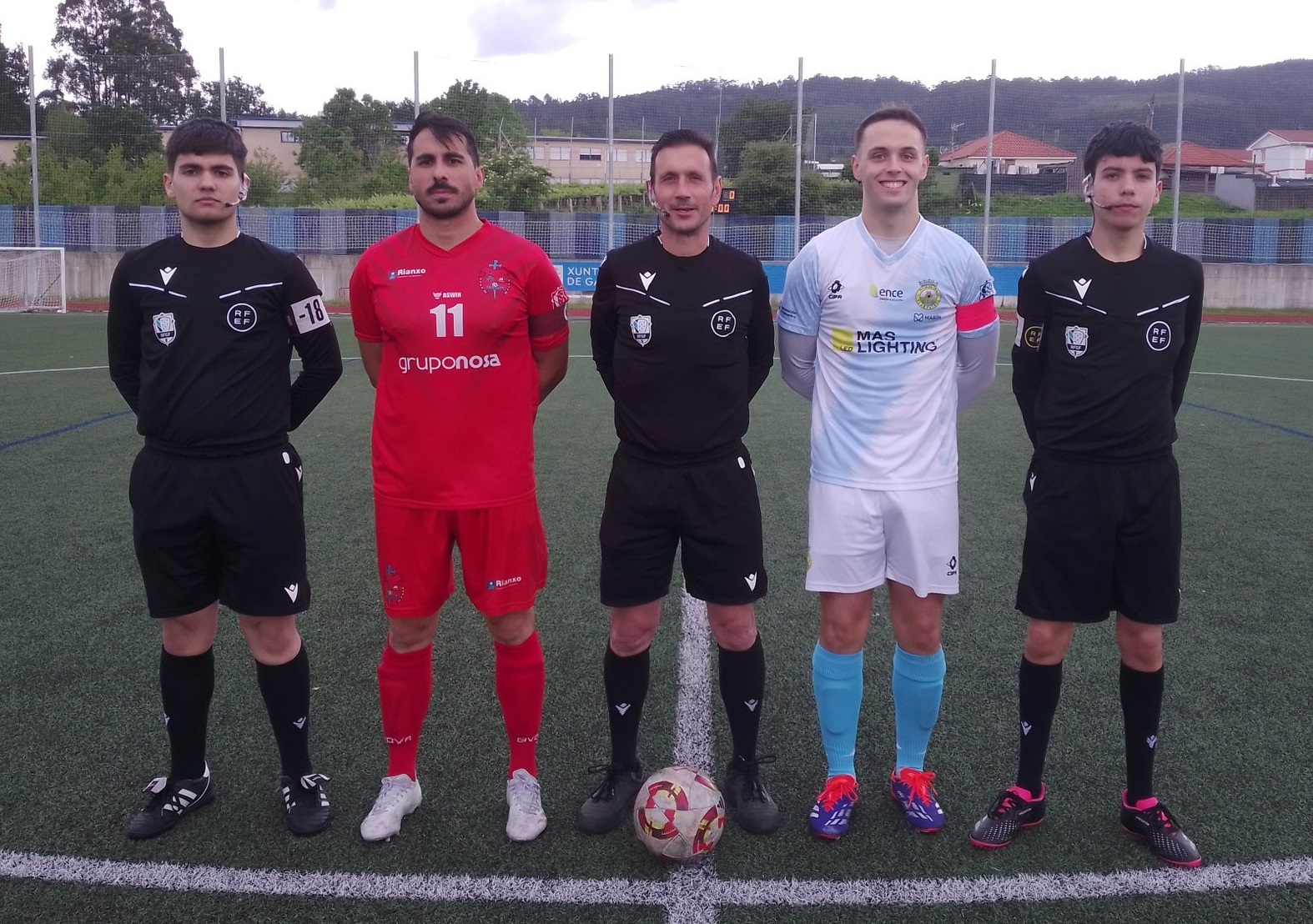 Árbitro : Campo Rosales con Jonathan Barreiro y Manuel Fernández ( Colegio de Pontevedra ) . Amonestó con tarjeta amarilla a los locales Xocas y Antón Vázquez .