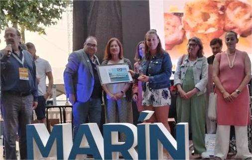 Cafetería La Real por su pincho 'Realmente bueno 2.0' que sus representantes recogieron de manos de la Concejala de Turismo del Concello de Marín, Cristina Acuña.