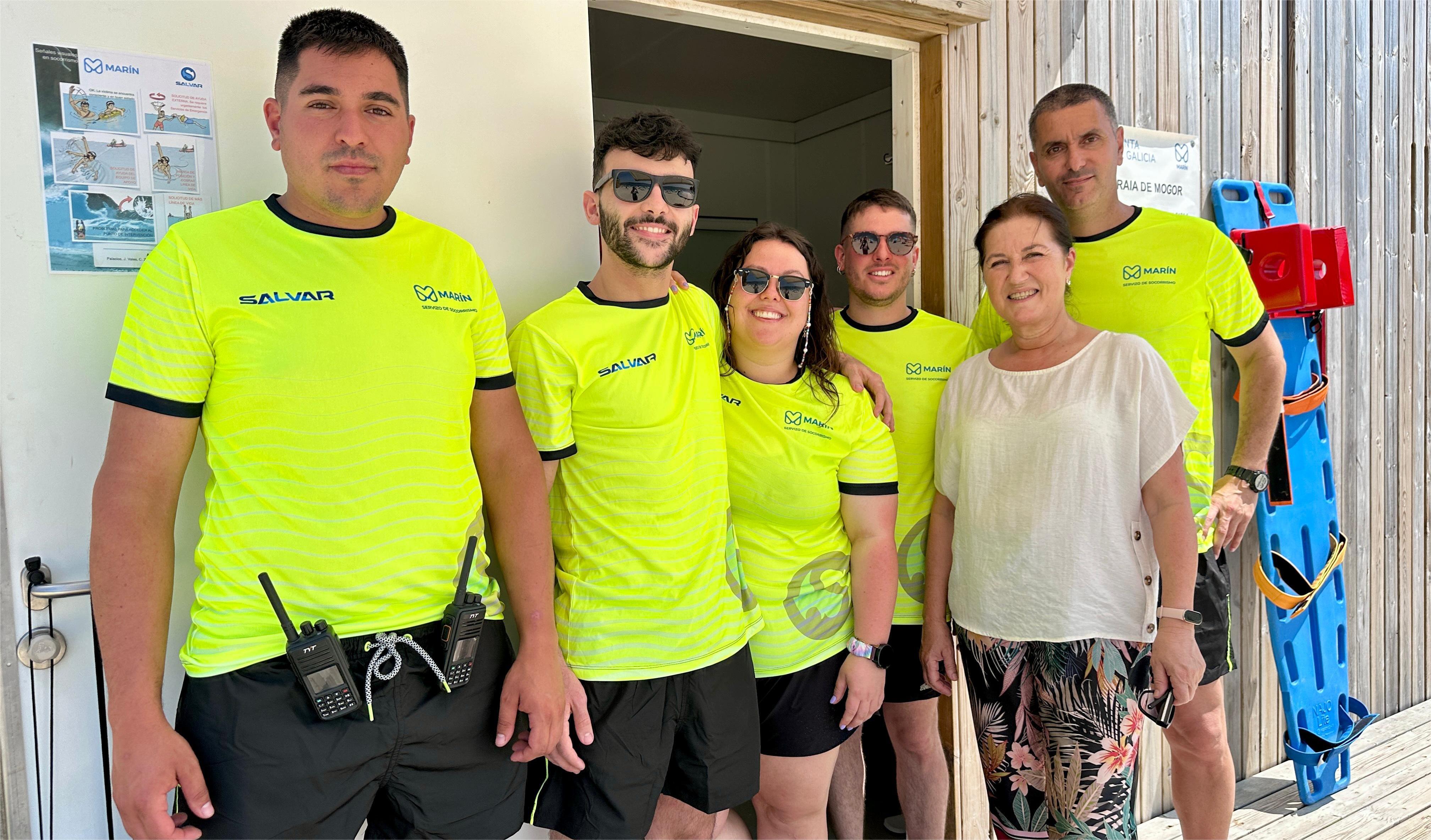Cristina Acuña, concejala de Turismo y Comercio del concello de Marín recibió ayer a los socorristas que, a partir de ahora y hasta el final de verano, estarán pendientes en los arenales marinenses de cualquier contingencia sanitaria que pudiera suceder