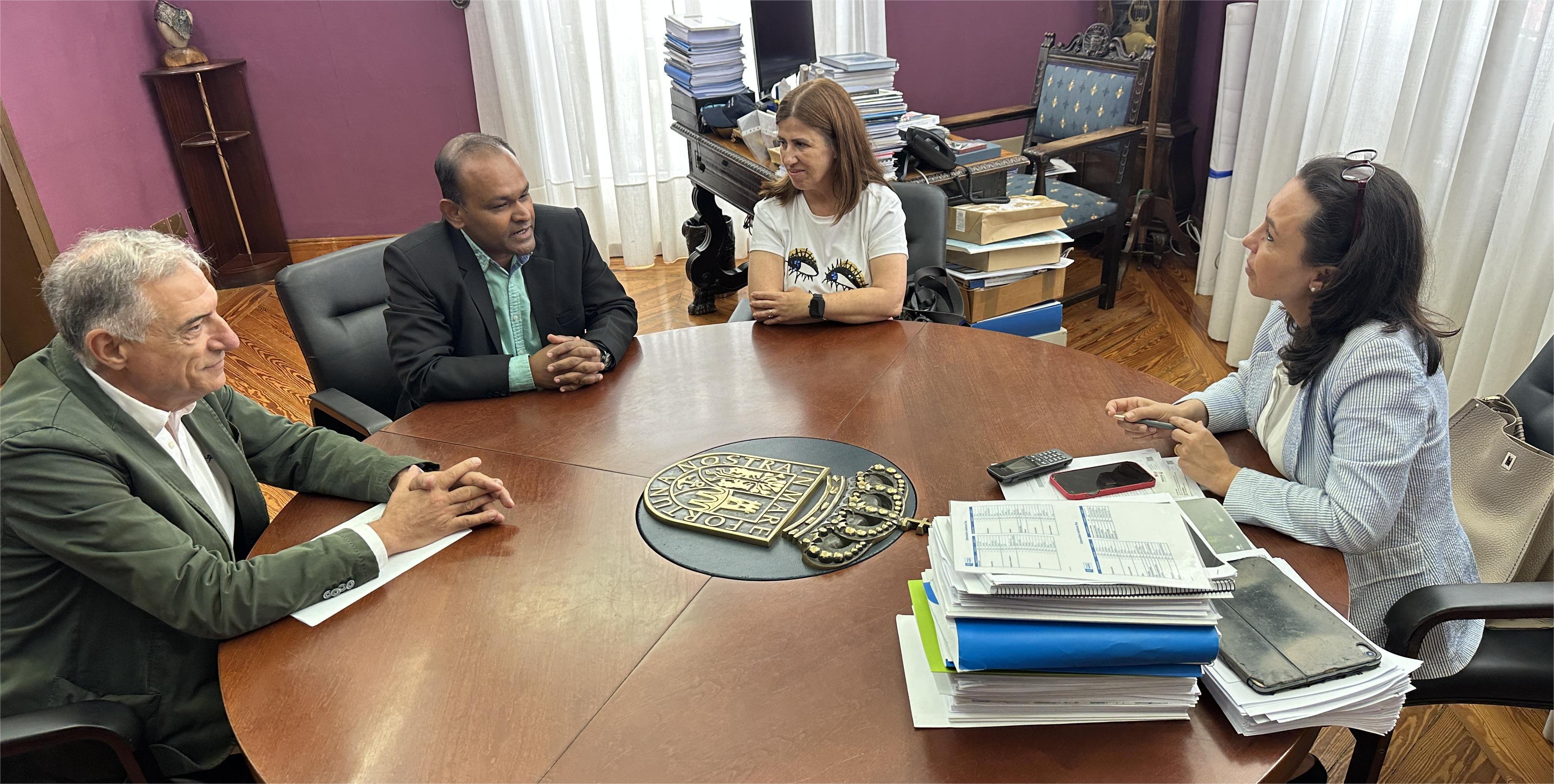 A alcaldesa, María Ramallo, recibiu no seu despacho a Anik Nandi, representante da Worxen University e presidente do Centro de Estudos Galegos para Asia, que veu acompañado de Luis Santiago, do PeixeGalego, clube co que