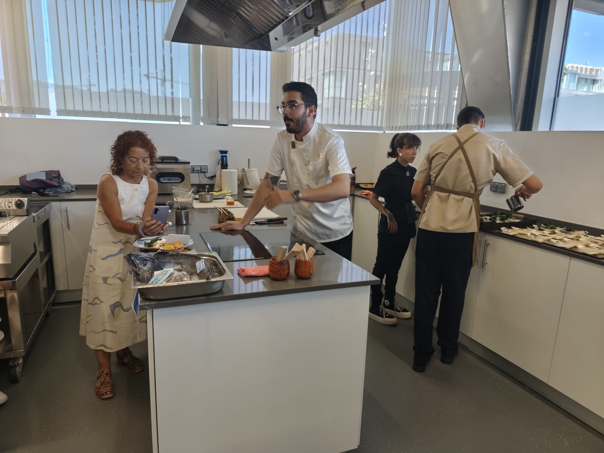 Pero especial mención merece o denominado “Showcooking” do Chef Marcos S,Area, no Restaurante “É” de relativamente recente apertura no Calexón Solla (moi próximo á Bibliotaca Pública), que resultou todo un acontecemento cun grupo de numerosa participación que aprendeu, da mán do Chef Marcos S. Area, preparacións gastronómicas de productos do mar coa
