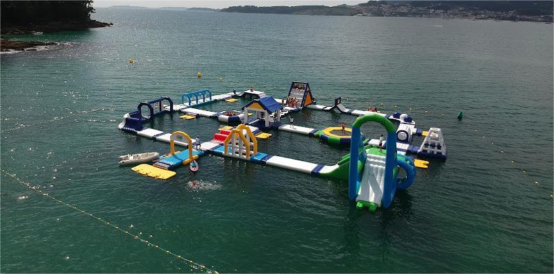 Mil cuatrocientos metros ocupa el “Aquapark Marín” instalado en los últimos días en la playa de Mogor por tercer año consecutivo y, desde hoy, se abre al público aportando diversión a sus usuarios