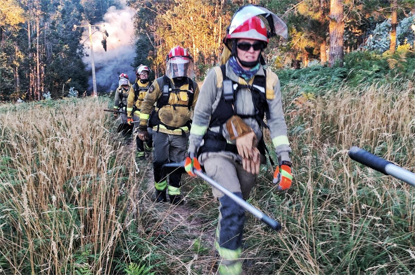 Catorce brigadas se sumaron después a un operativo peligroso y muy difícil de abordar debido al fuerte viento, que trata evitar la extensión de las llamas que, según ha podido saber Carriola, han alcanzado ya algunas zonas de Monte Pornedo y Chans y se aproximan a Monte Pituco, en la parroquia marinense de San Xulián.
